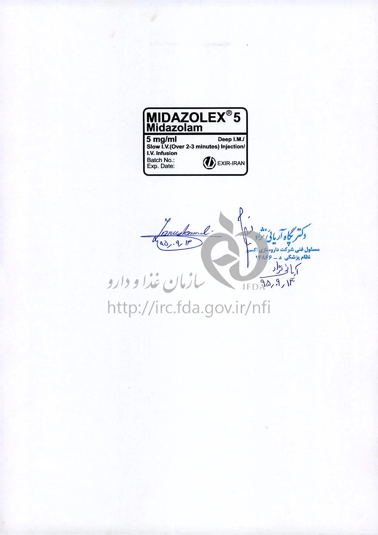 موارد مصرف میدازولکس تزریقی پرنترال 5 mg/1mL 1MILLILITER