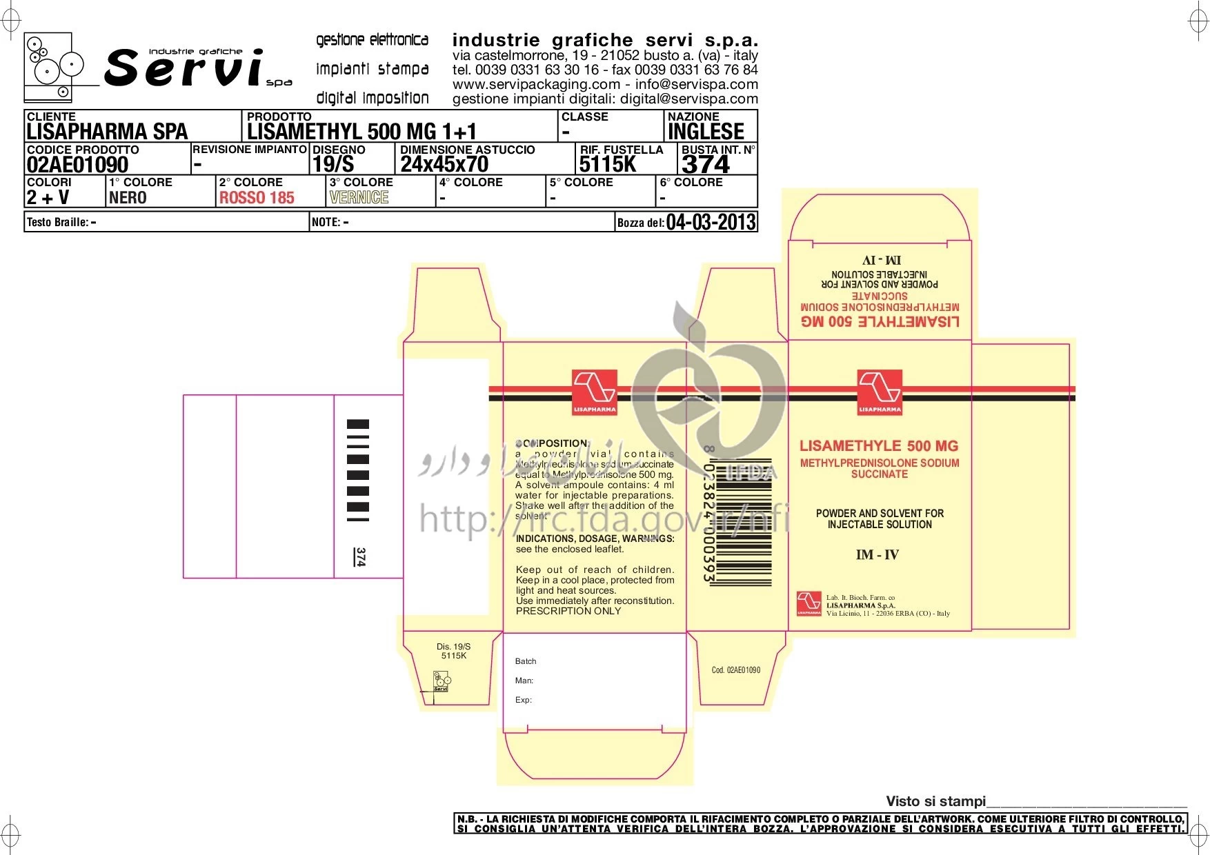 METHYLPREDNISOLONE (AS SODIUM SUCCINATE) INJECTION, POWDER, FOR SOLUTION PARENTERAL 500 mg