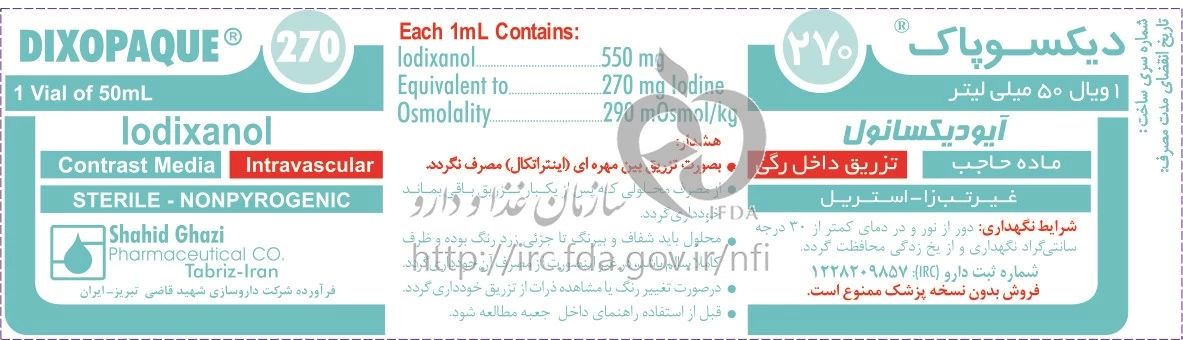 دیکسوپاک تزریقی پرنترال 270 mg/1mL 50MILLILITER