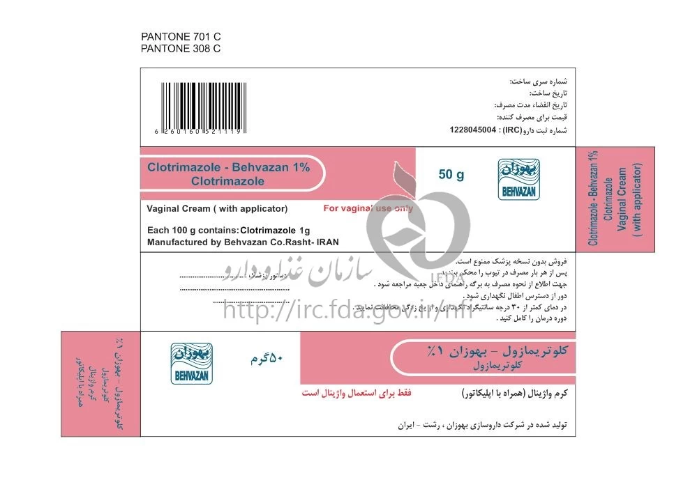 کلوتریمازول - بهوزان 1درصد 50گرم کرم واژینال 1 % 50GRAM
