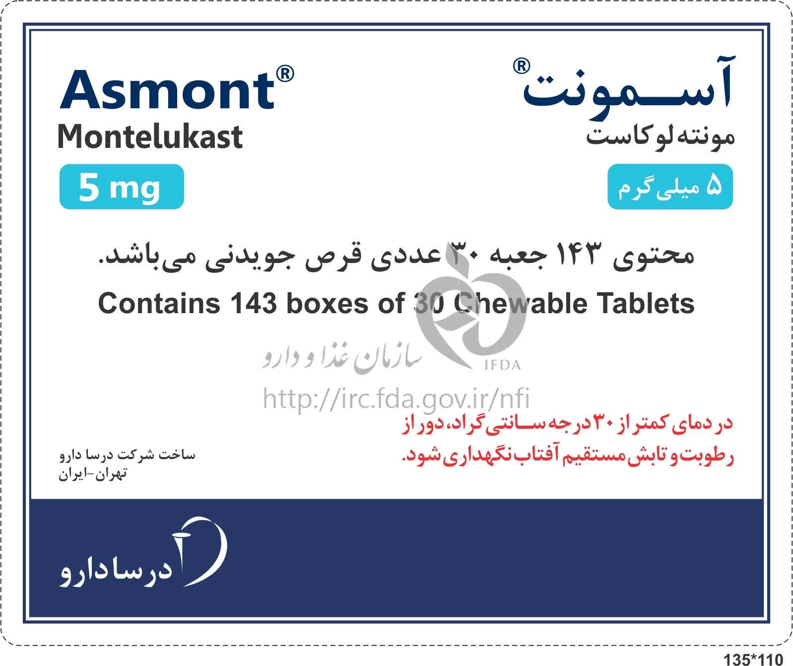 آسمونت قرص جویدنی خوراکی 5 mg
