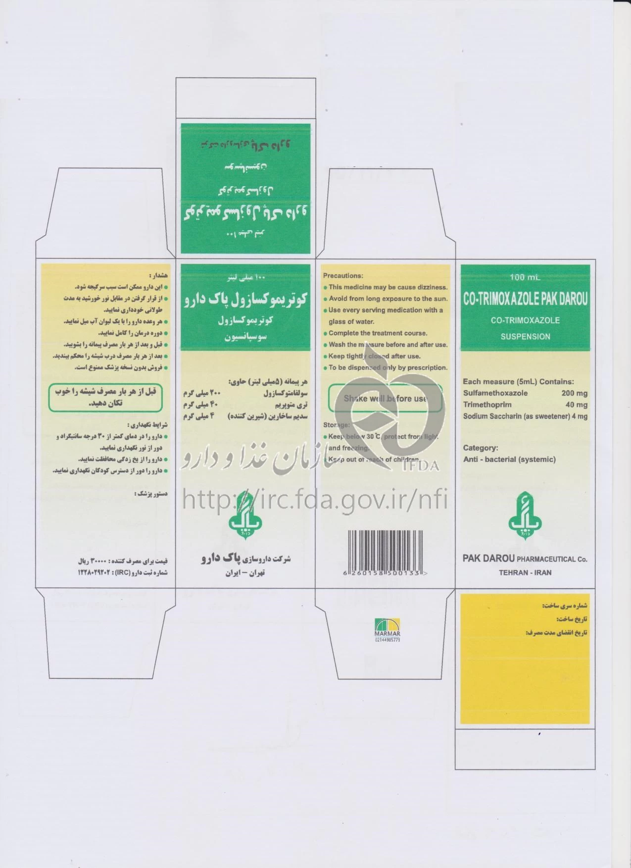 کو - تریموکسازول پاک دارو سوسپانسیون خوراکی 200 mg/40 mg/5mL