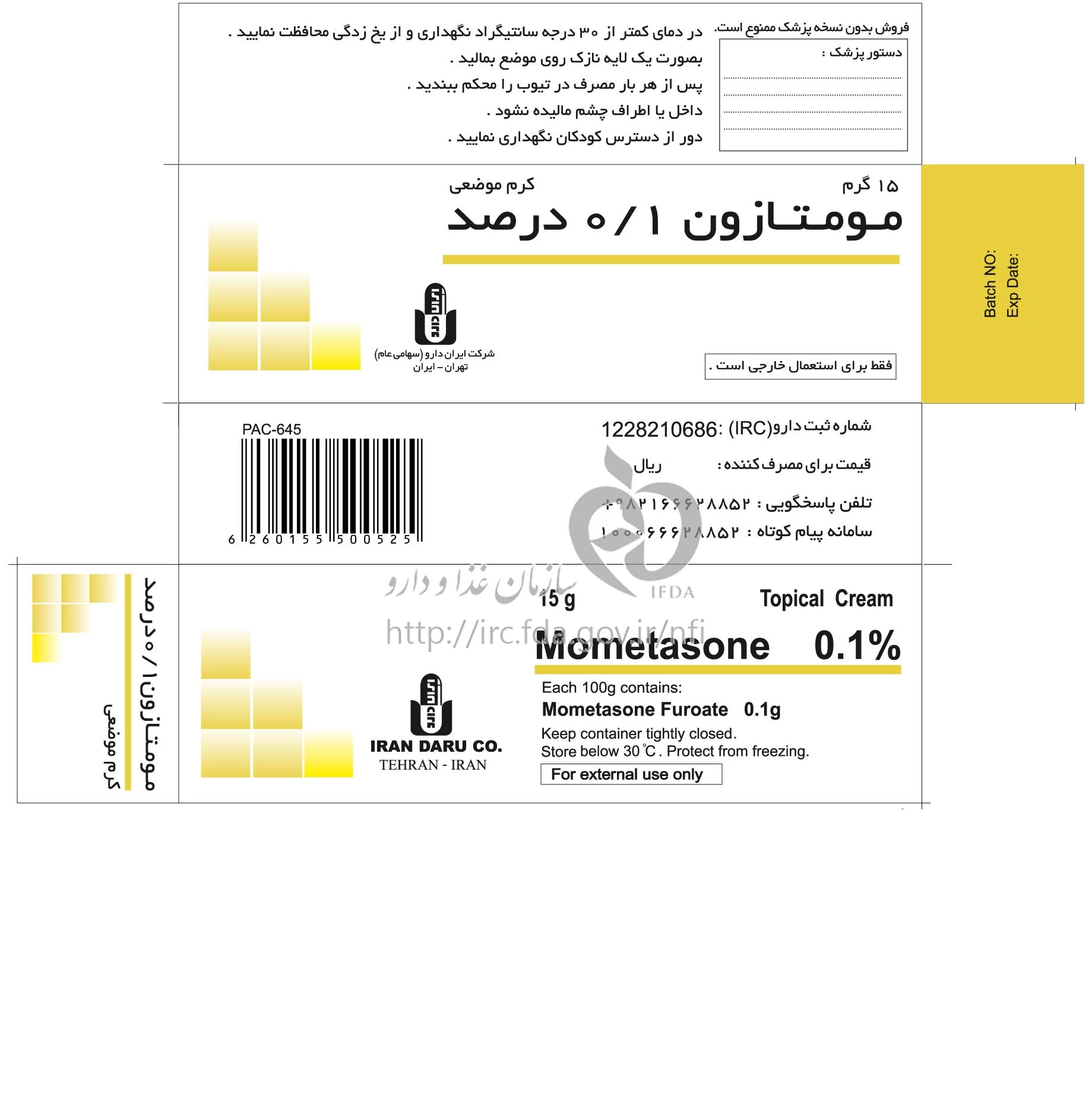 مومتازون کرم موضعی 0.1 % 15GRAM