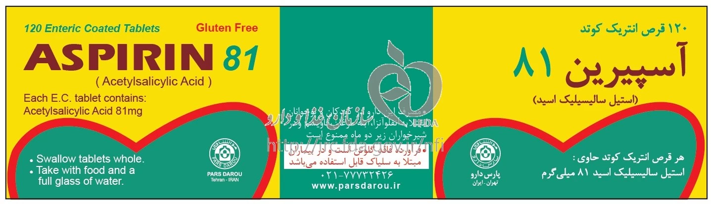 تداخل های دارویی آسپیرین قرص انتریک کوتد خوراکی 81 mg