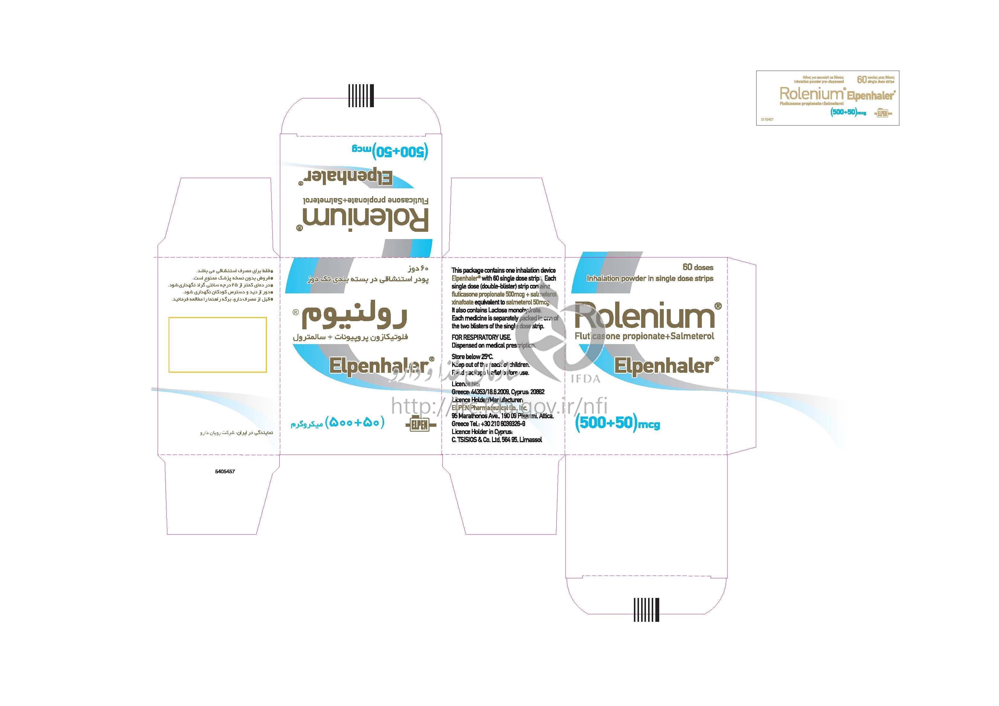 رولنیوم پودر پیش پرداخت دیسک استنشاقی 50 ug/500 ug/1{dose} 60DOSE