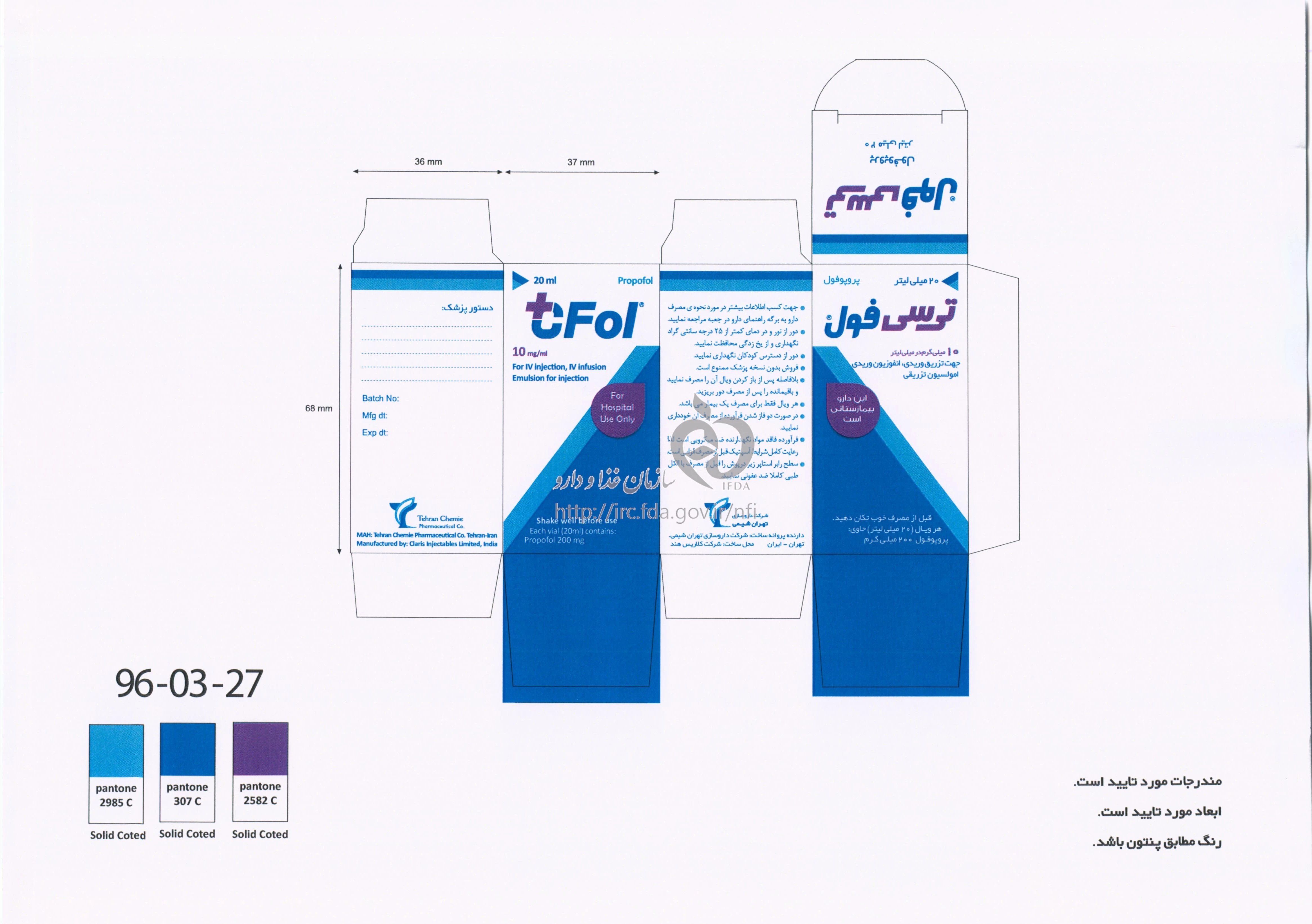 موارد مصرف تی سی فول امولسیون تزریقی پرنترال 10 mg/1mL 20MILLILITER