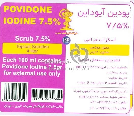 پوویدون آیداین محلول موضعی 7.5 % 3.8LITER