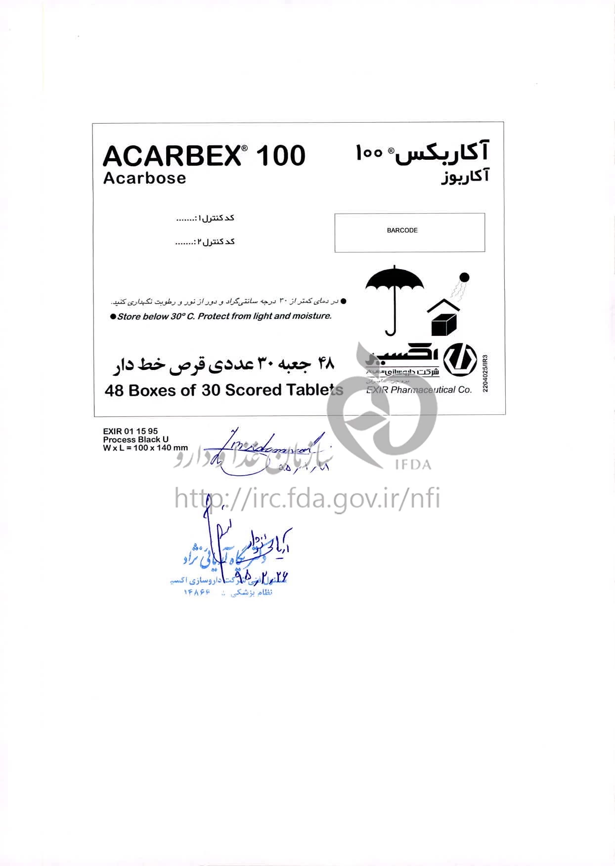 آکاربکس قرص خوراکی 100 mg