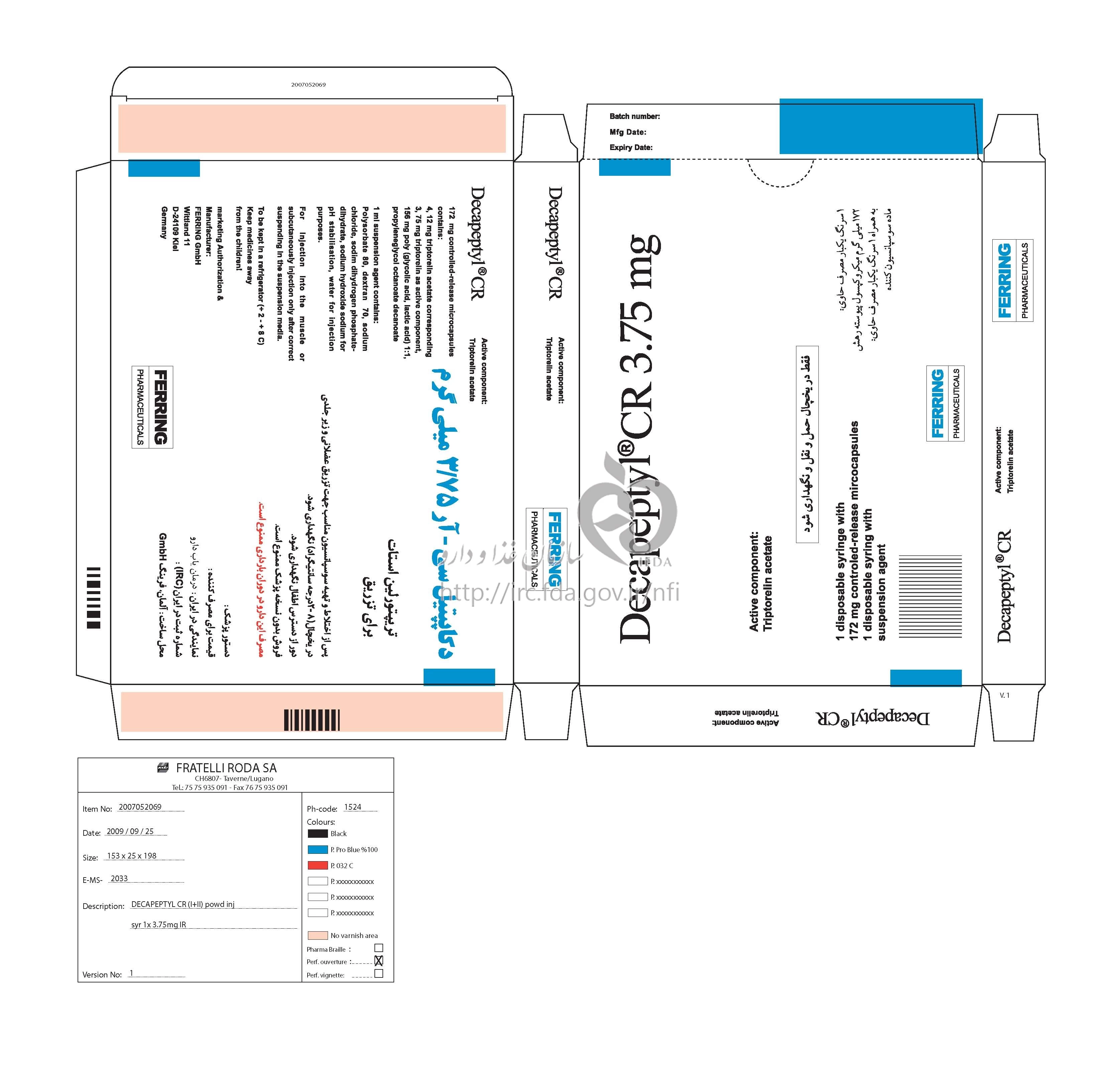 دکترها دکاپپتیل پودر لیوفیلیزه سوسپانسیون تزریقی آهسته رهش پرنترال 3.75 mg