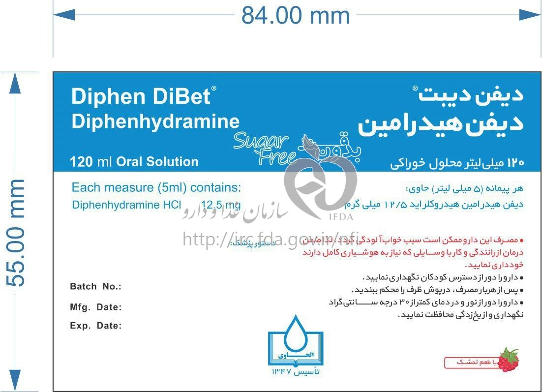 موارد مصرف ، عوارض جانبی ، مصرف بارداری و تداخلات دارویی دیفن دیبت محلول خوراکی 12.5 mg/5mL 120MILLILITER