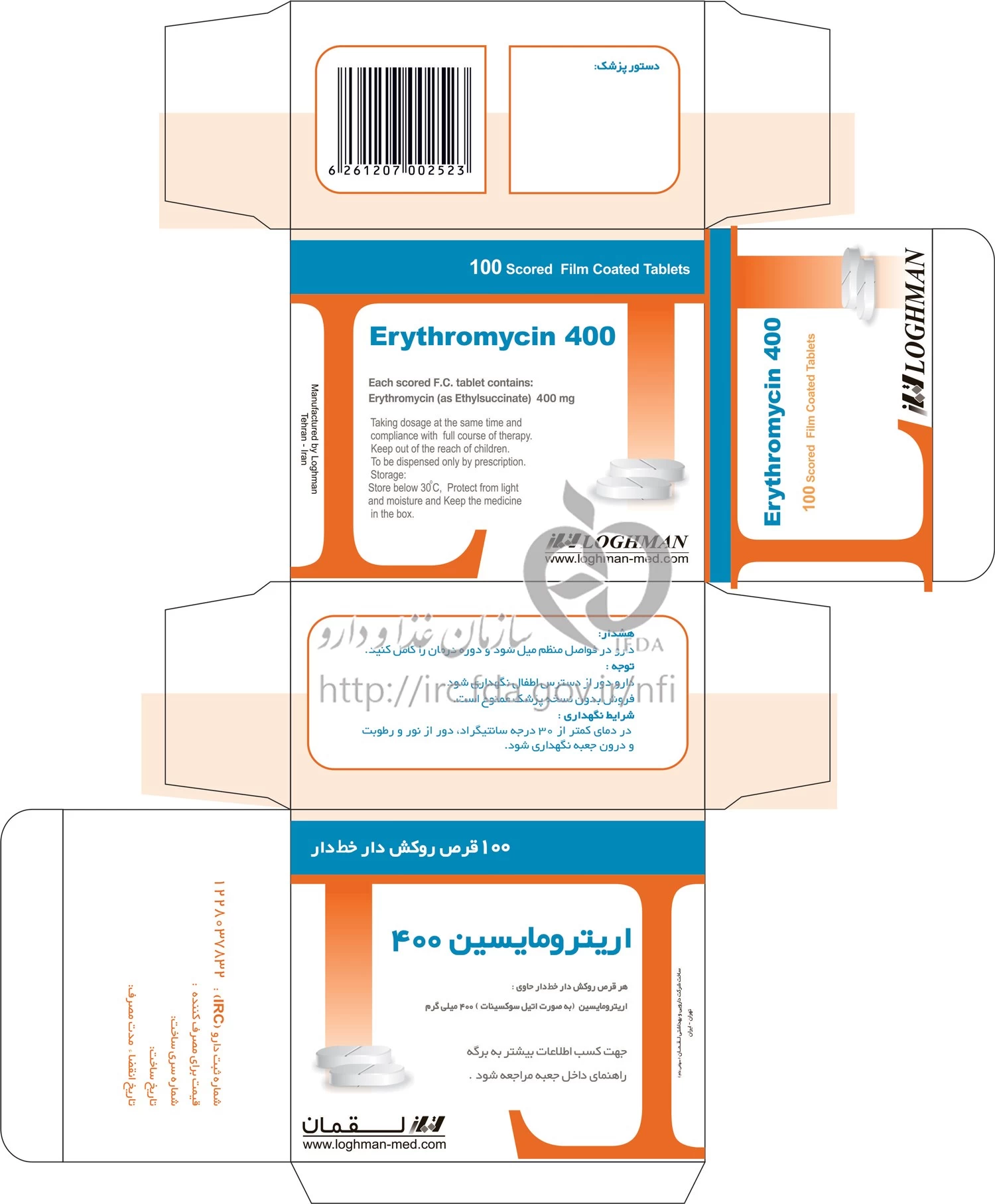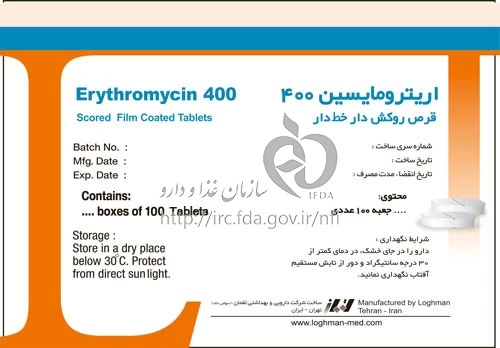 اریترومایسین قرص خوراکی 400 mg