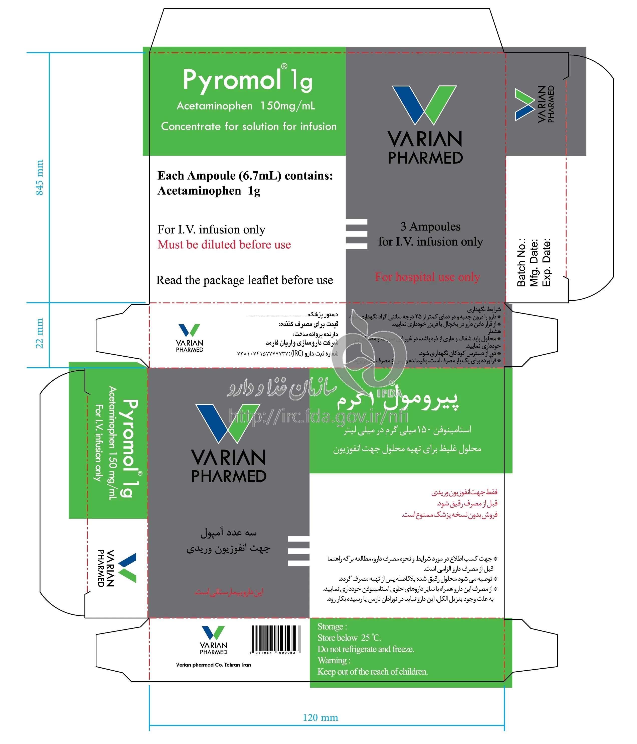 پیرومول محلول غلیظ تزریقی داخل وریدی 150 mg/1mL 6.7MILLILITER