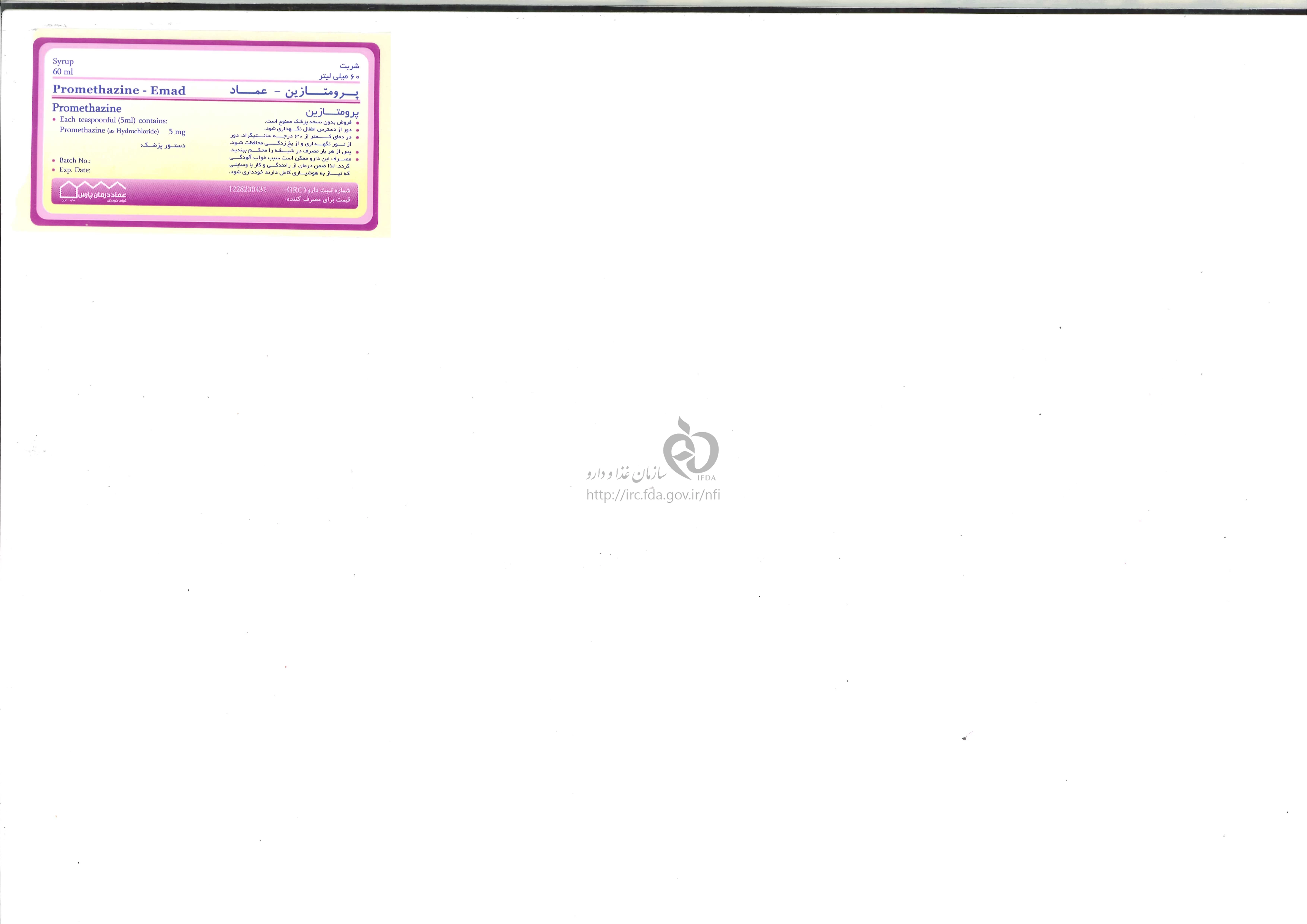 پرومتازین شربت خوراکی 5 mg/5mL 60MILLILITER