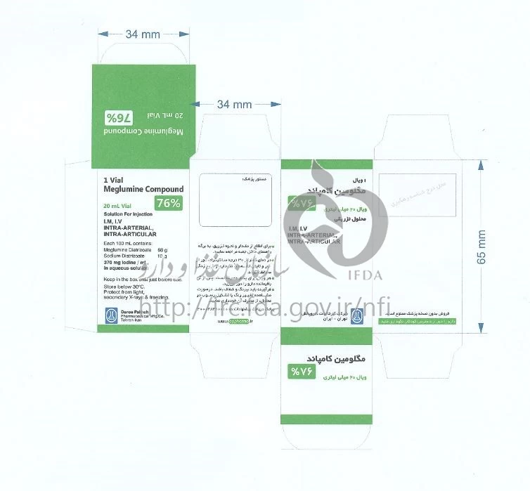 مگلومین کامپاند تزریقی پرنترال 66 %/10 % 20MILLILITER