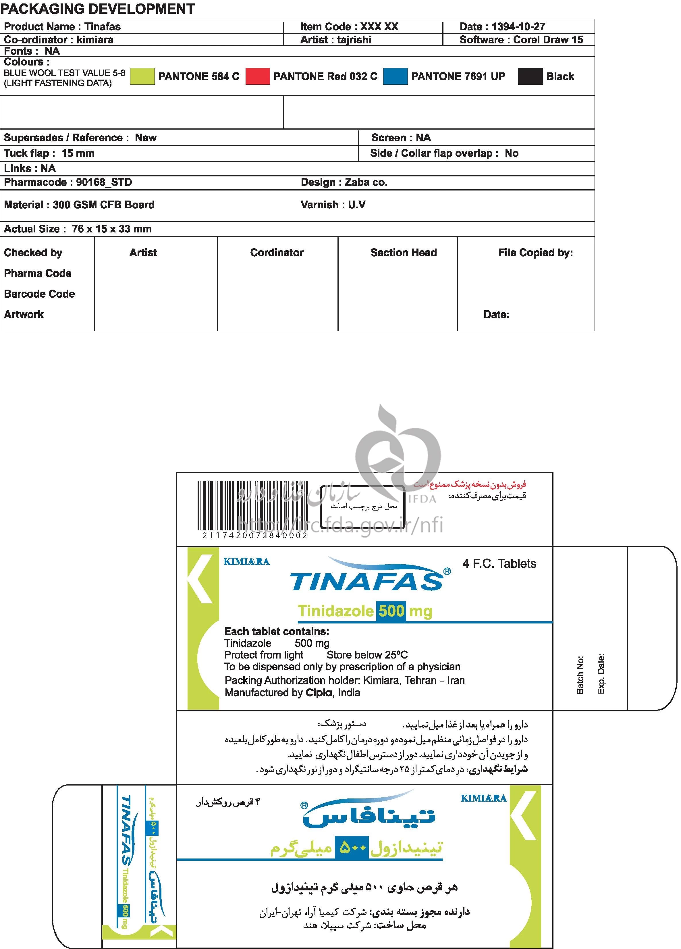 دکترها تینافاس قرص خوراکی 500 mg