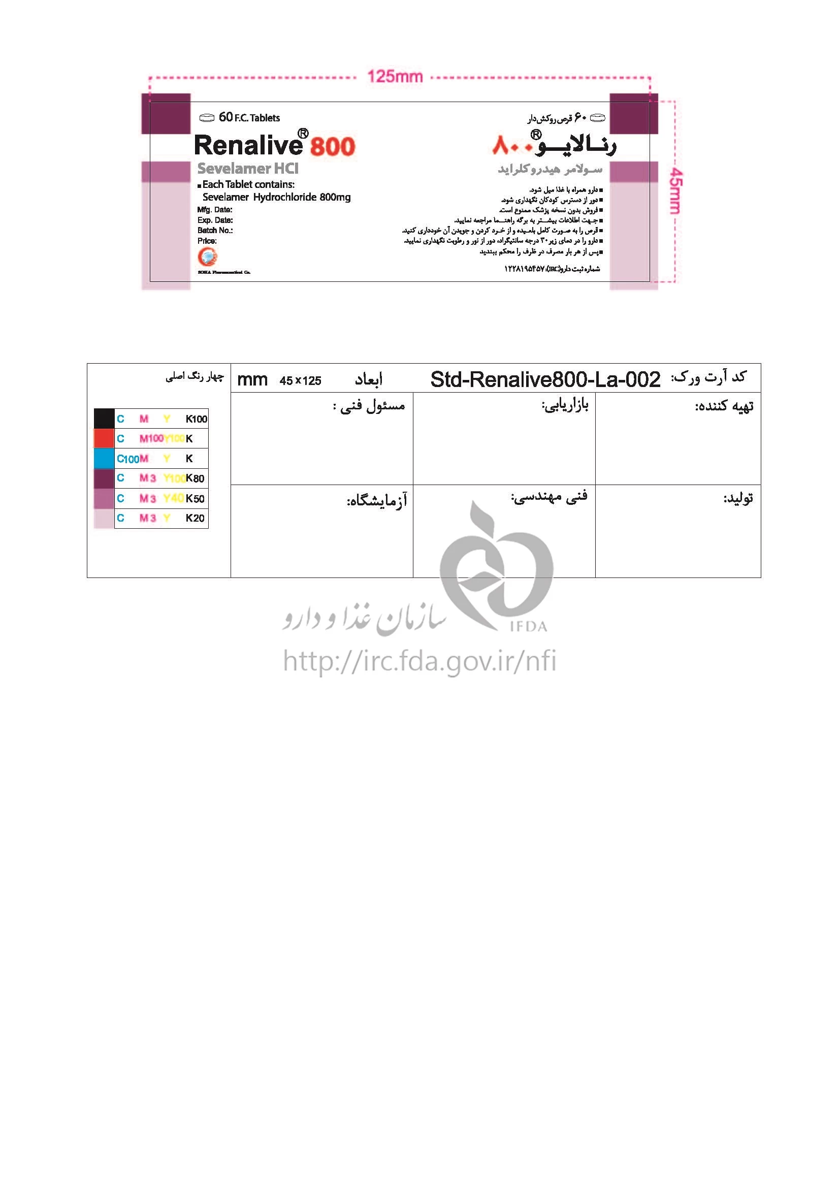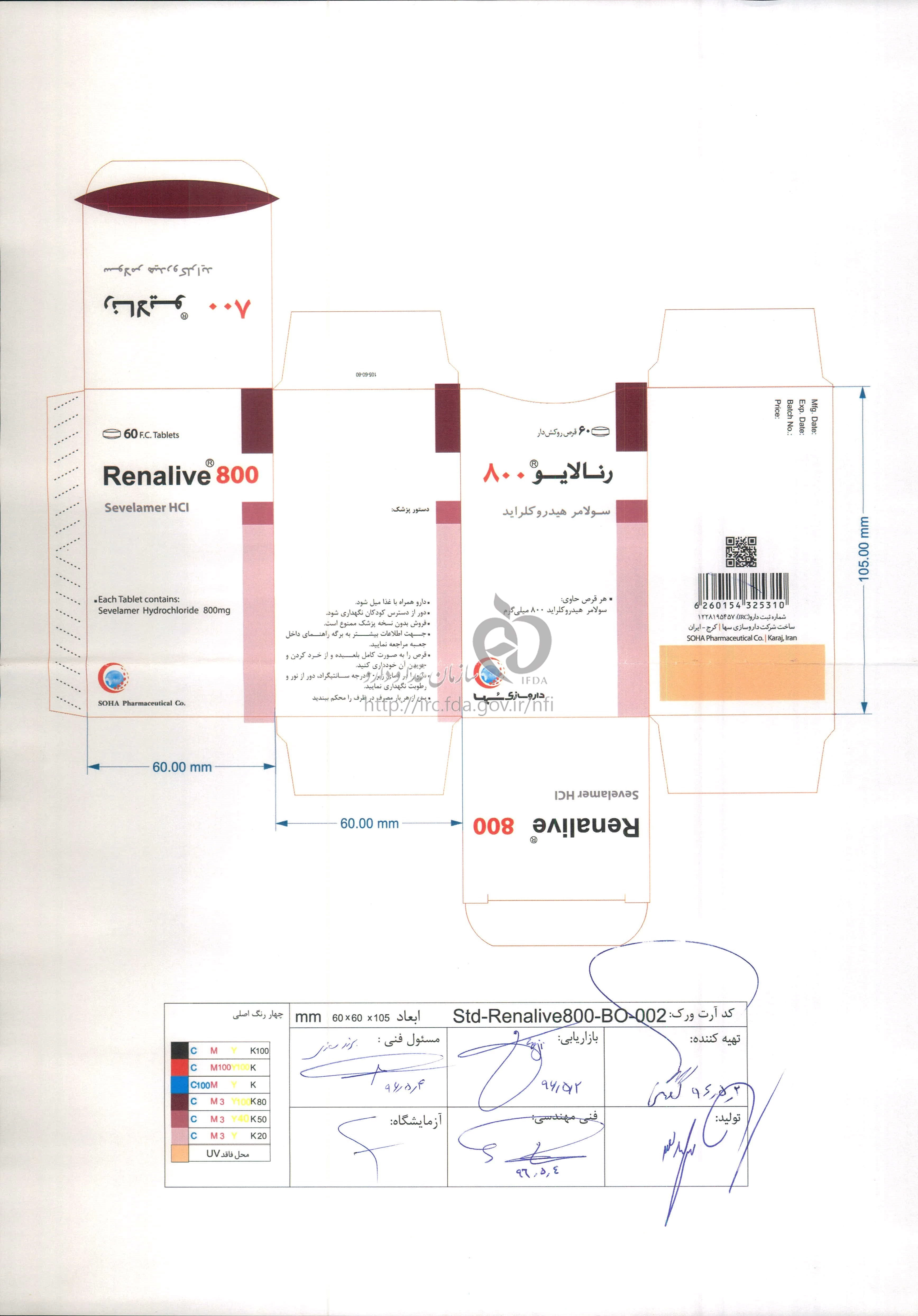رنالایو قرص خوراکی 800 mg