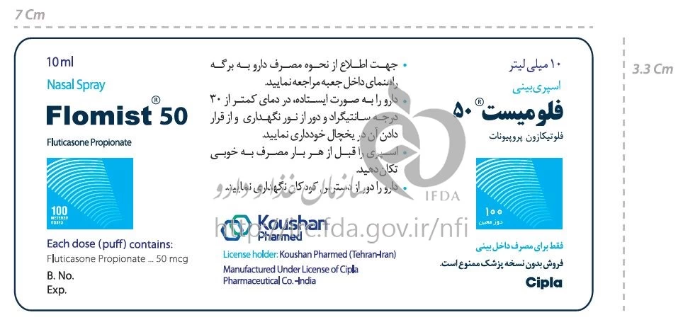 فلومیست اسپری اسپری از راه بینی 50 ug/1{Puff} 100PUFF