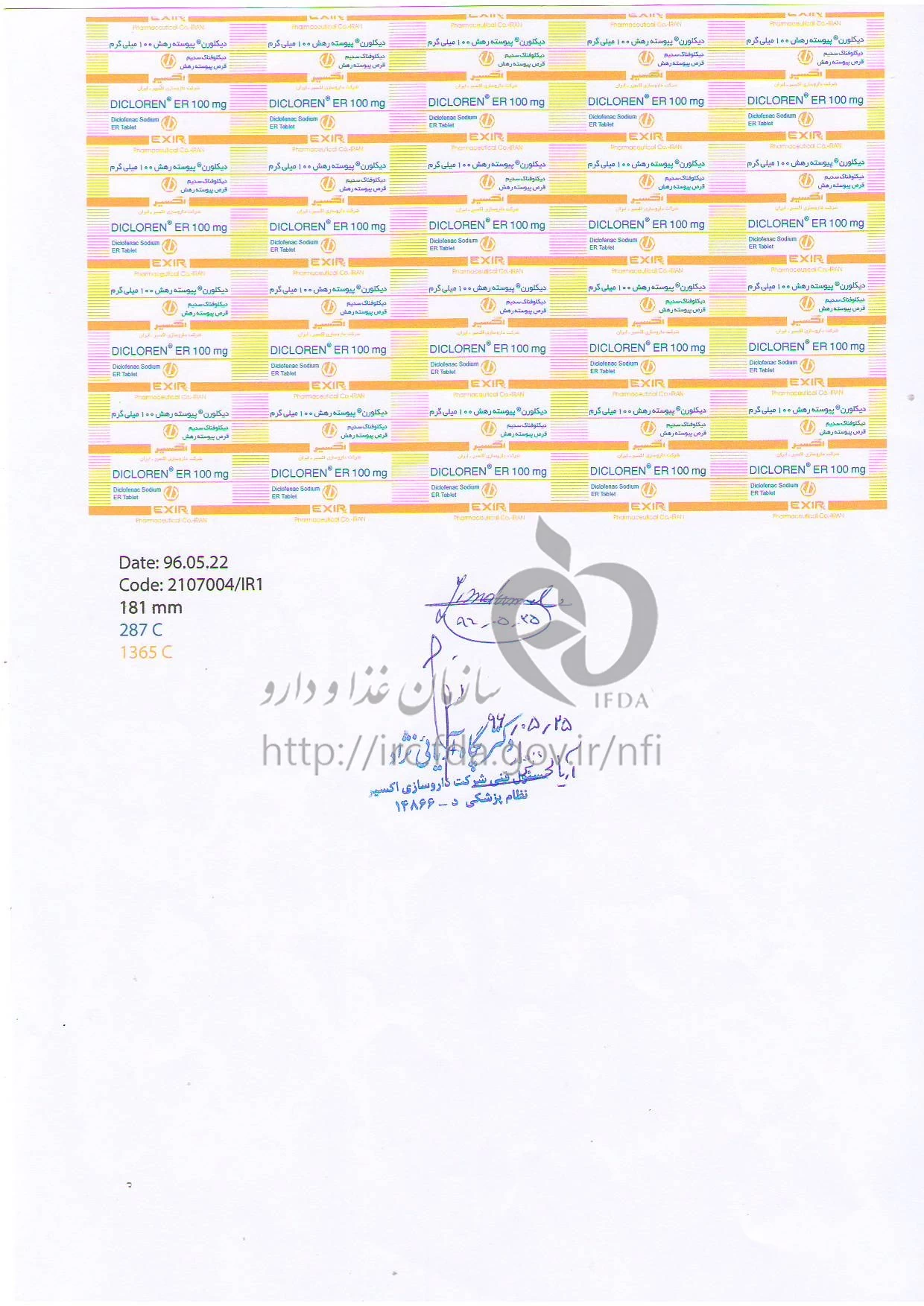 دیکلورن قرص پیوسته رهش خوراکی 100 mg