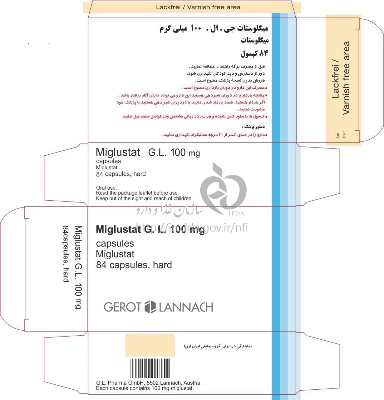 میگلوستات کپسول خوراکی 100 mg