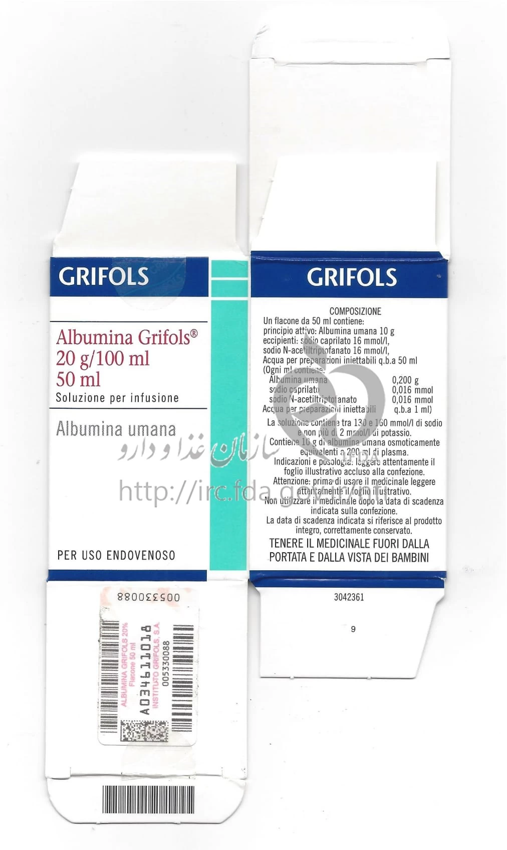 آلبومینا گریفولز محلول تزریقی پرنترال 20 % 50MILLILITER