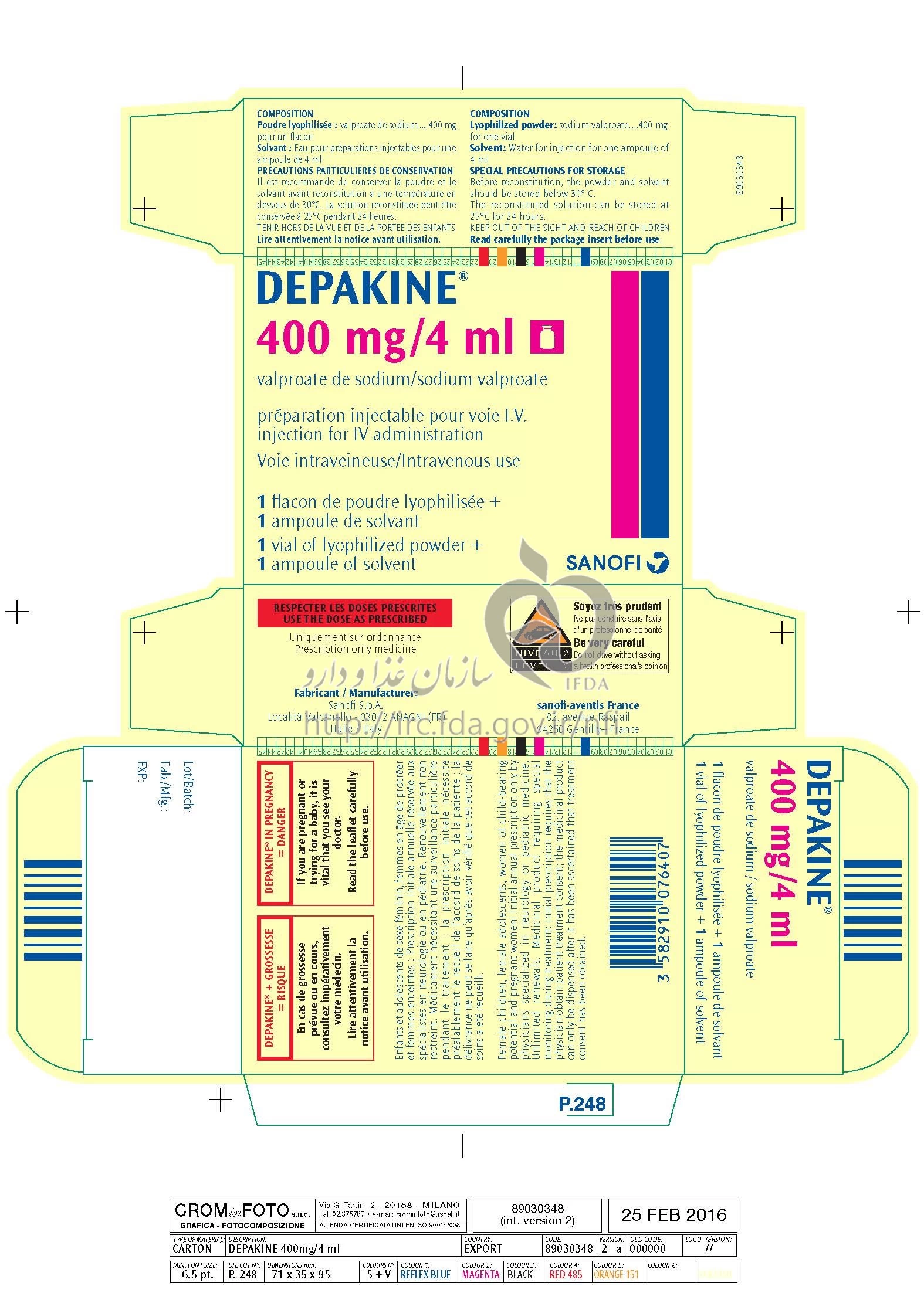 VALPROATE SODIUM INJECTION, POWDER, FOR SOLUTION PARENTERAL 400 mg