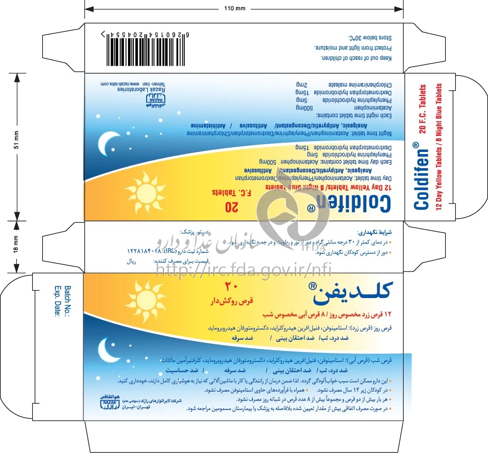 موارد مصرف ، عوارض جانبی ، مصرف بارداری و تداخلات دارویی کلدیفن قرص خوراکی 15 mg/2 mg/5 mg/500 mg