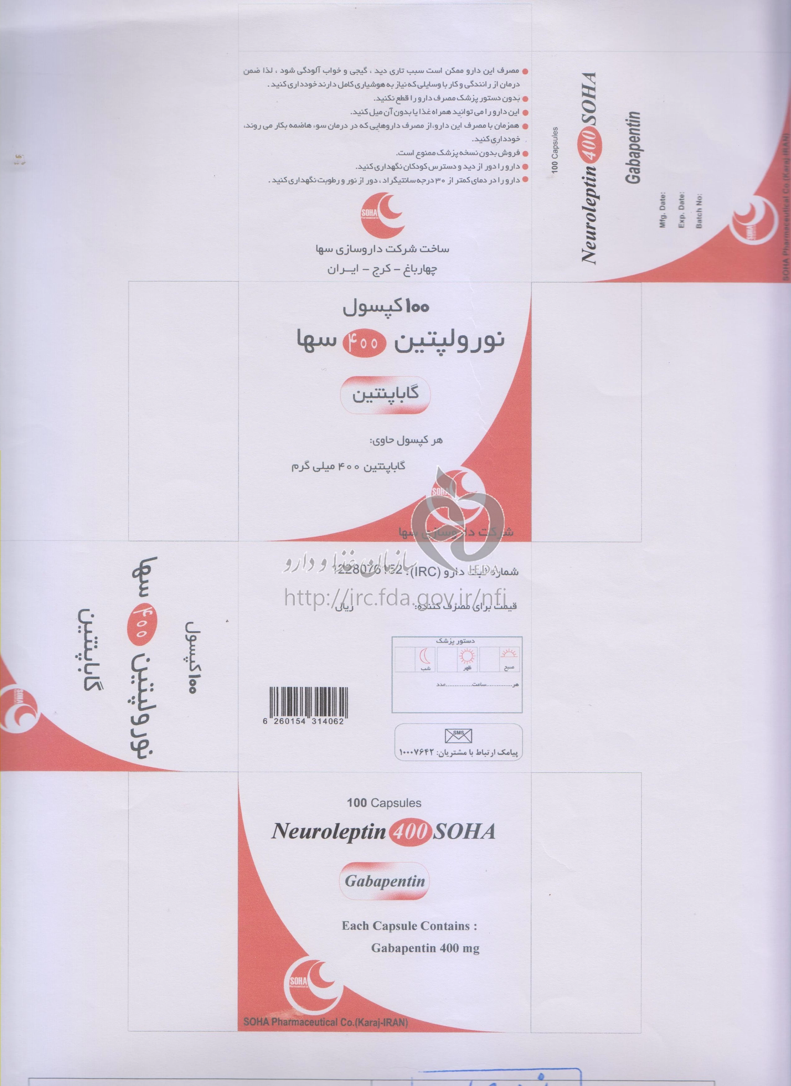 نورولپتین کپسول خوراکی 400 mg