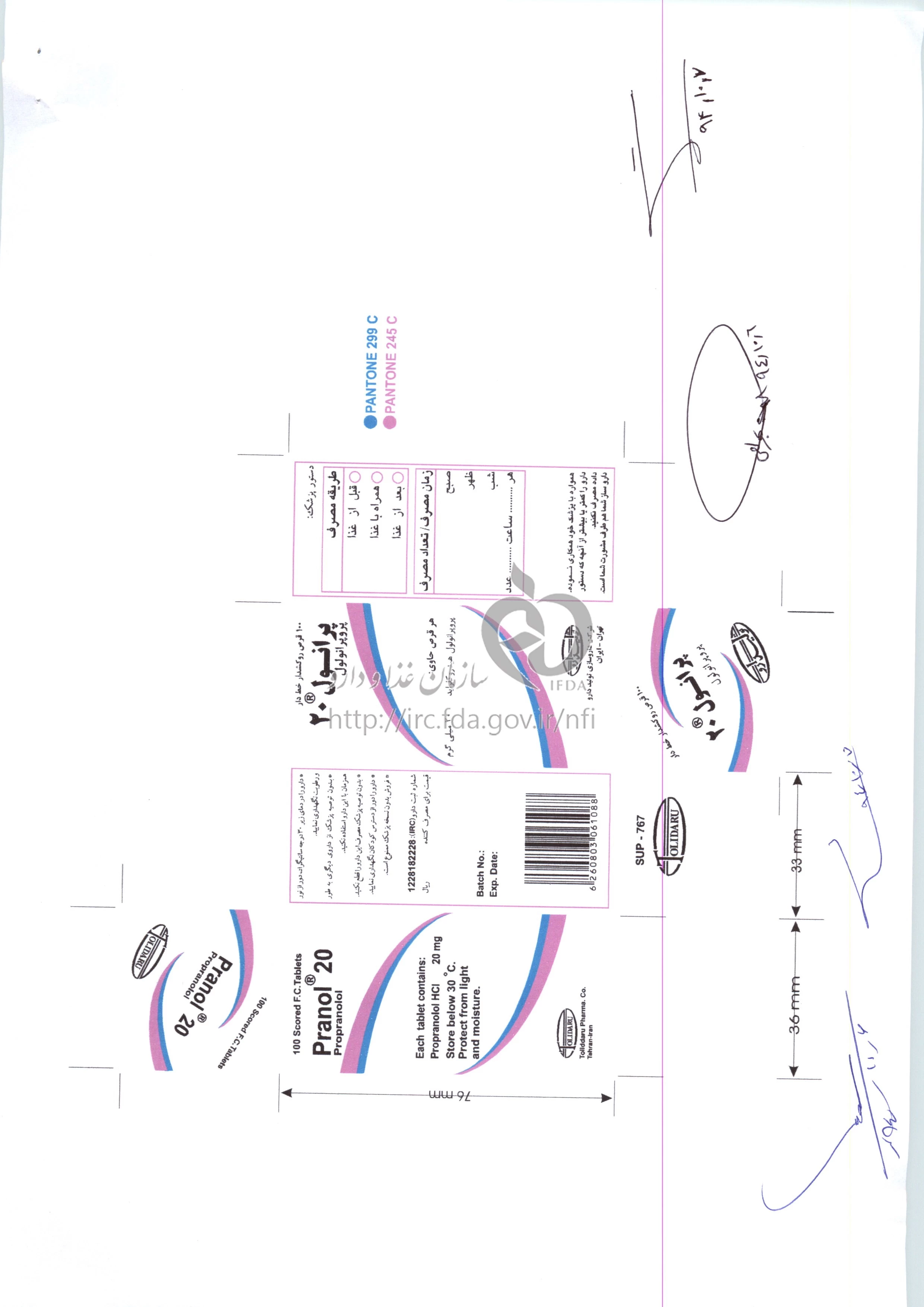 پرانول قرص خوراکی 20 mg