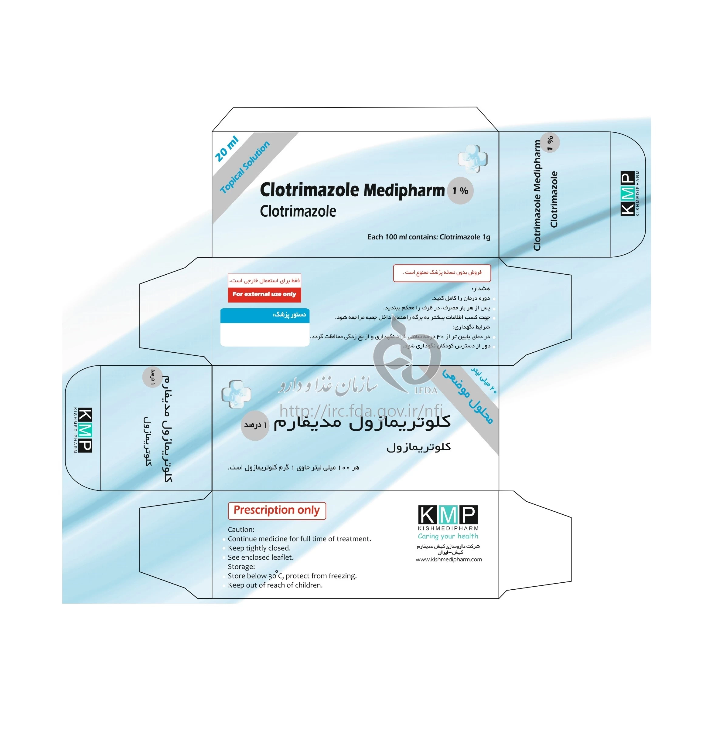 کلوتریمازول مدیفارم محلول موضعی 1 % 20MILLILITER