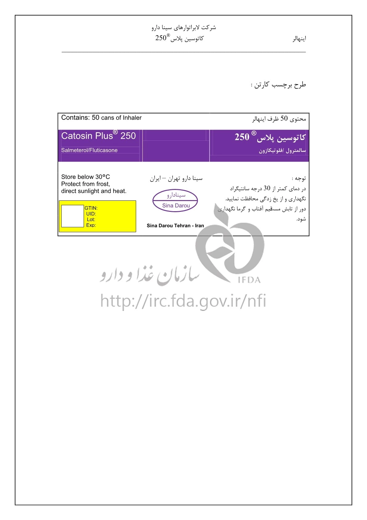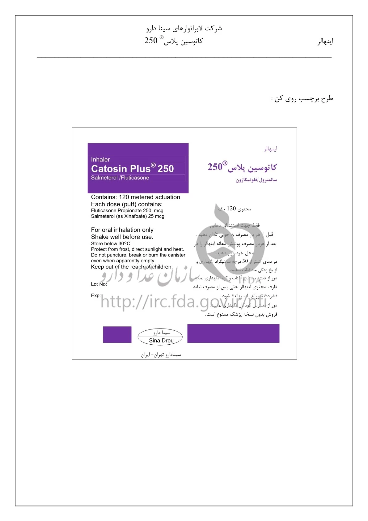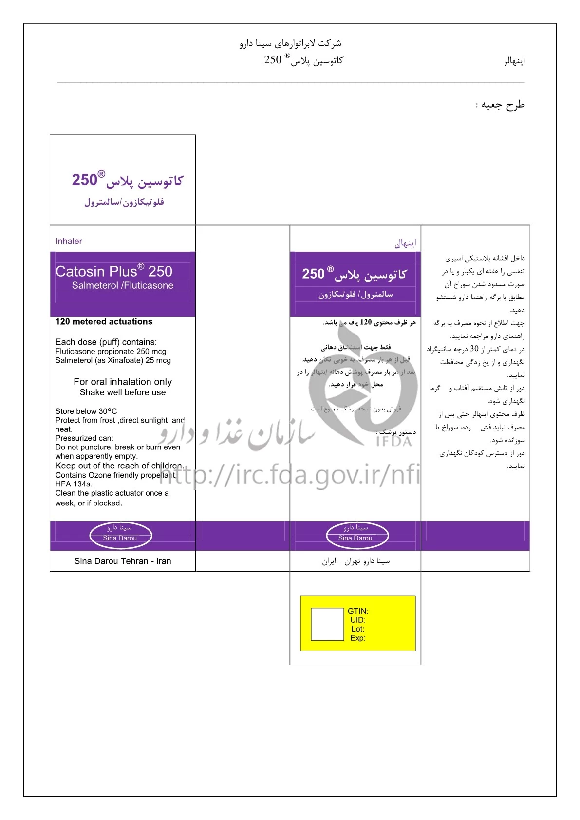 کاتوسین پلاس اینهالر استنشاقی 25 ug/250 ug/1{dose} 120DOSE