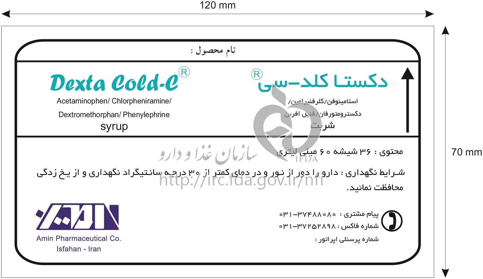 دکستا کلد سی شربت خوراکی 160 mg/1 mg/5 mg/2.5 mg/5mL 60MILLILITER