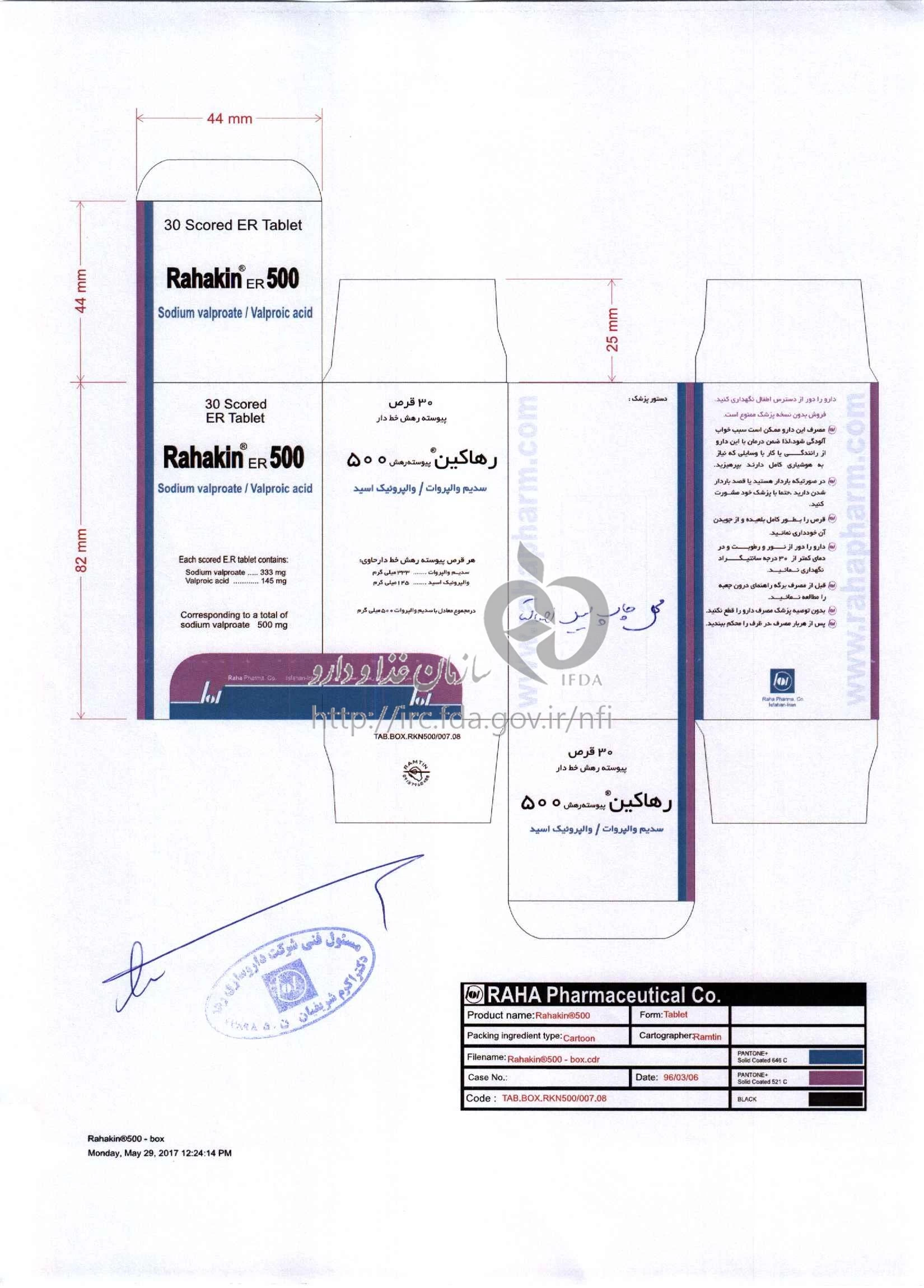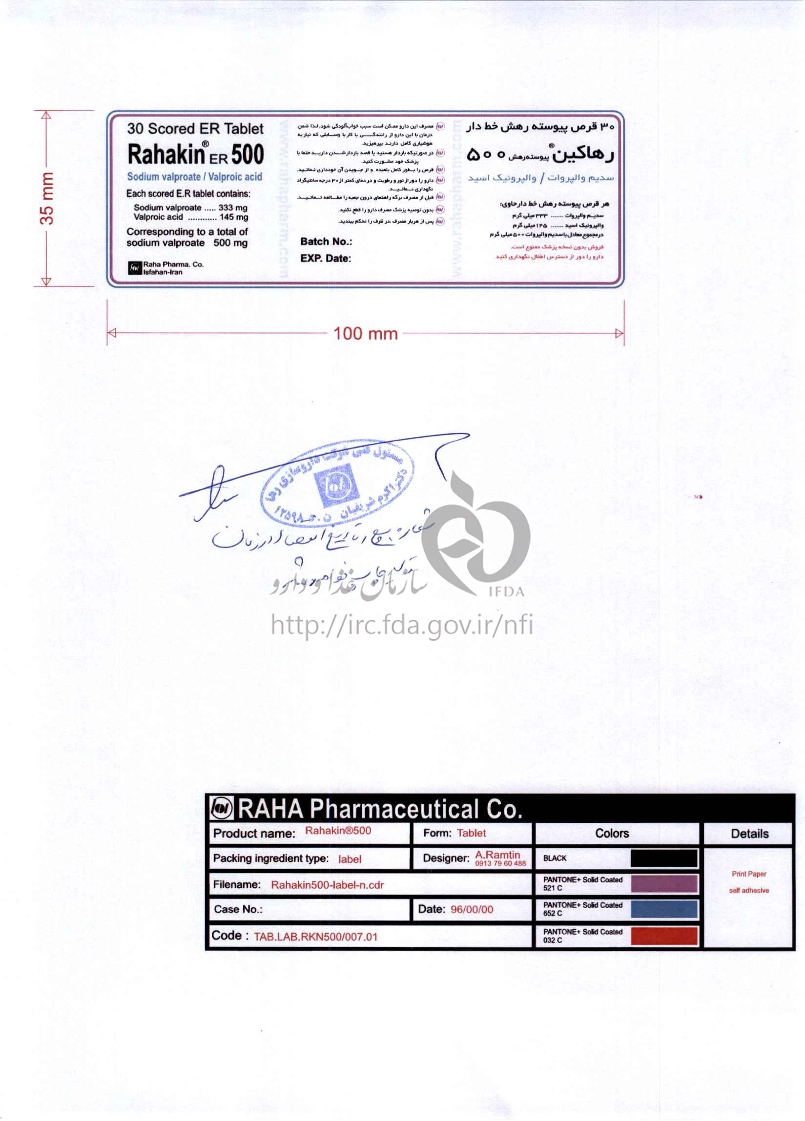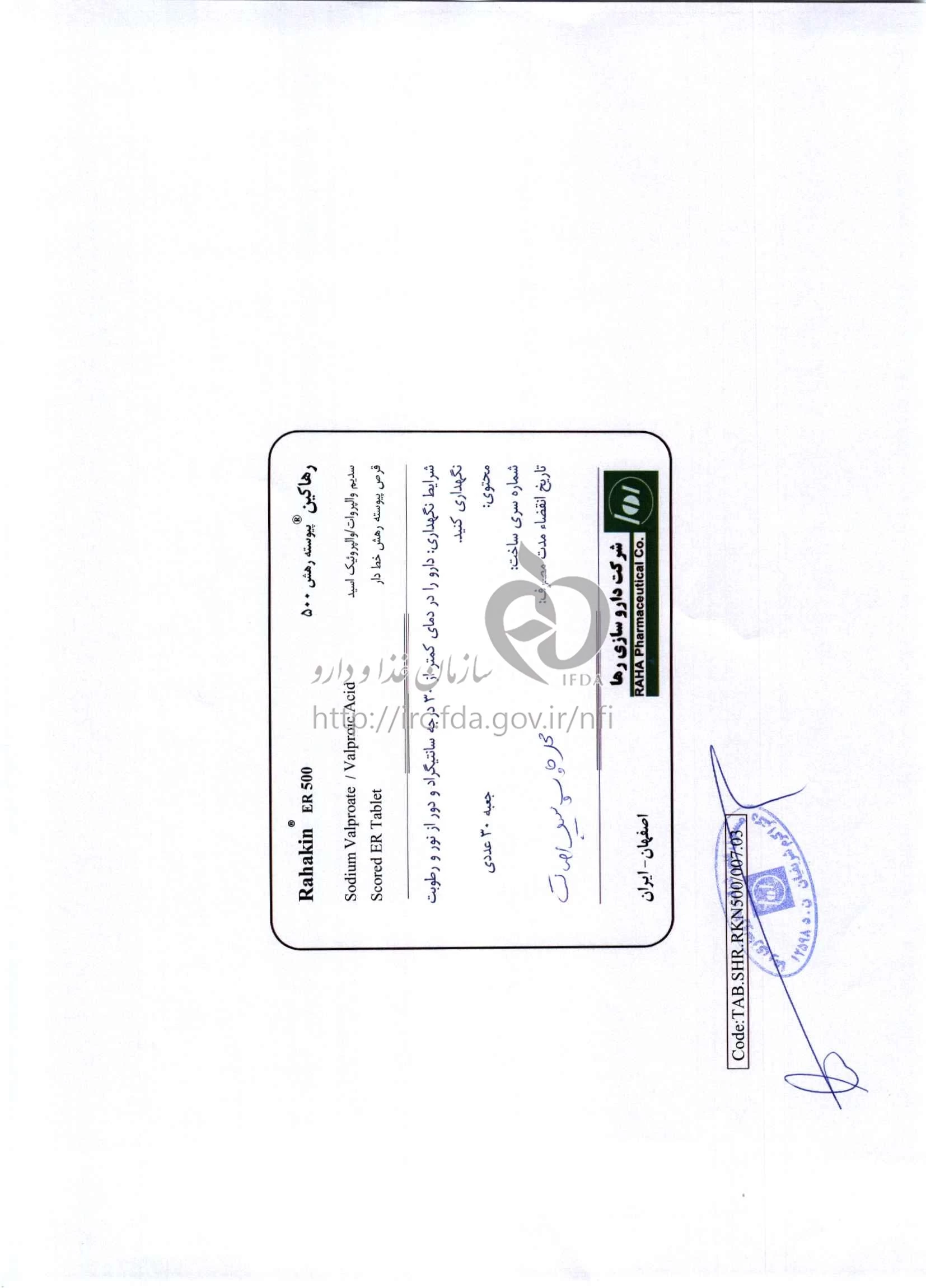 رهاکین قرص پیوسته رهش خوراکی 500 mg