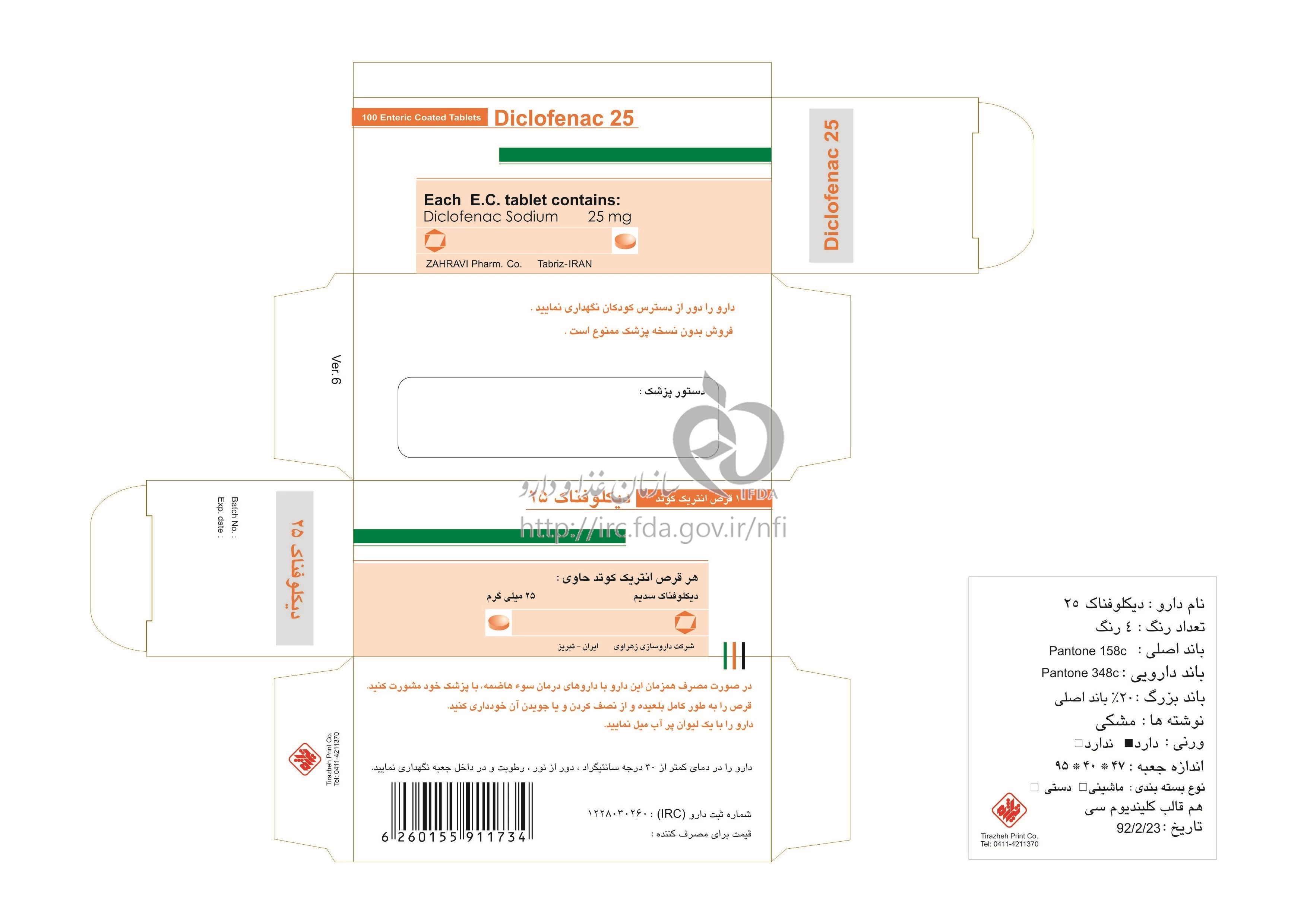 دیکلوفناک سدیم قرص انتریک کوتد خوراکی 25 mg