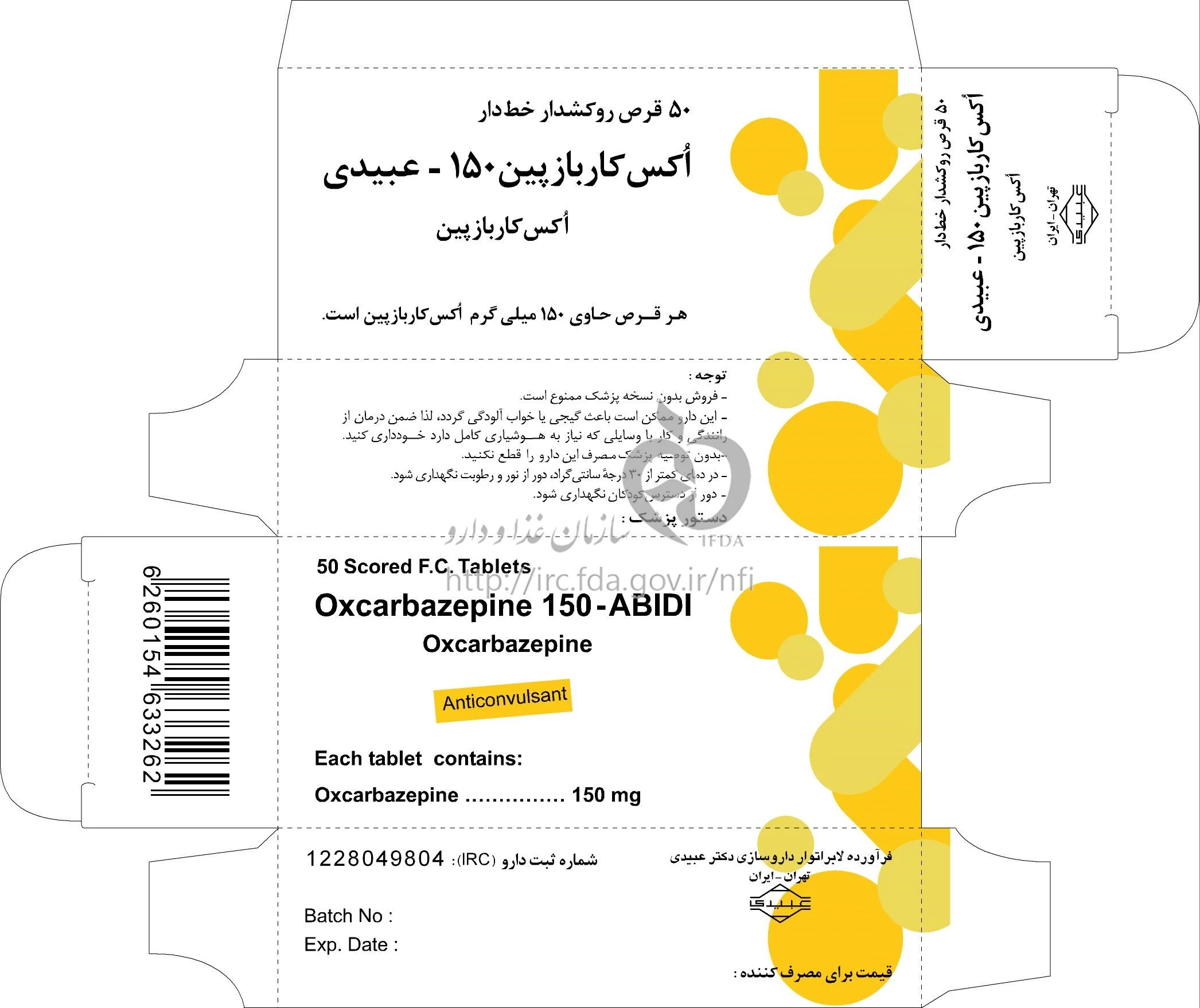 اکس کاربازپین - عبیدی قرص خوراکی 150 mg