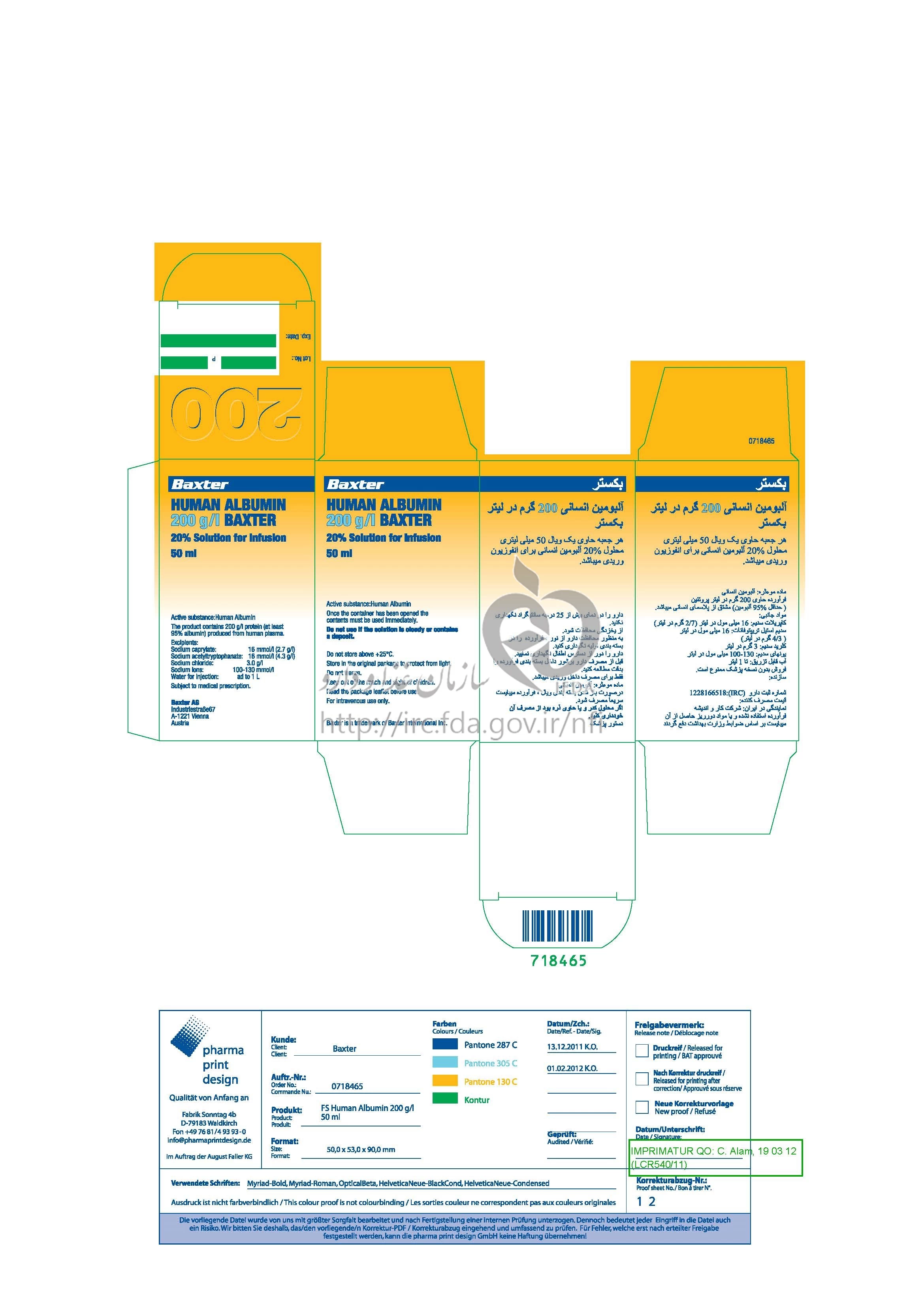 ALBUMIN (HUMAN) INJECTION, SOLUTION PARENTERAL 20 % 50MILLILITER