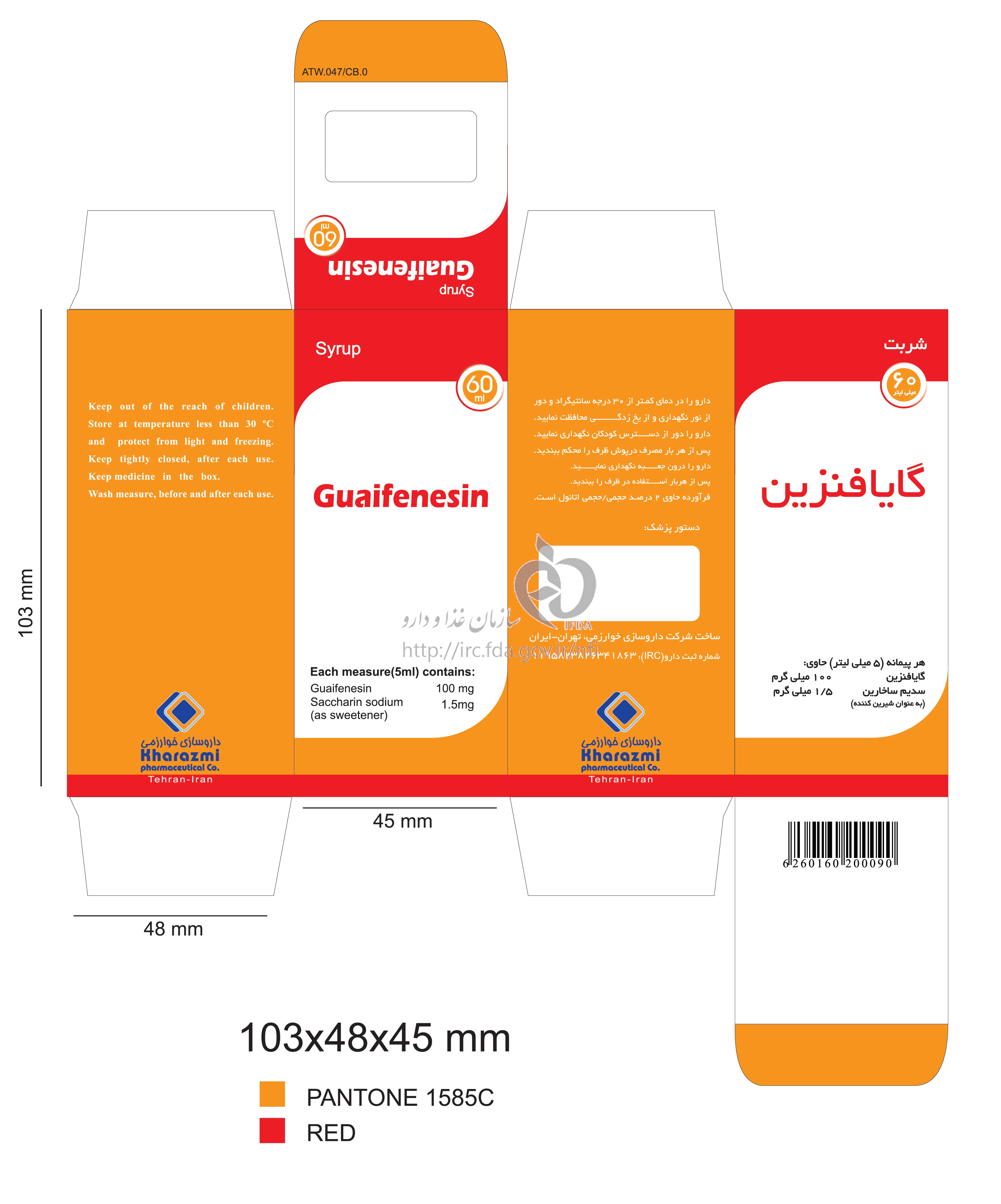 موارد مصرف گایافنزین شربت خوراکی 100 mg/5mL 60MILLILITER