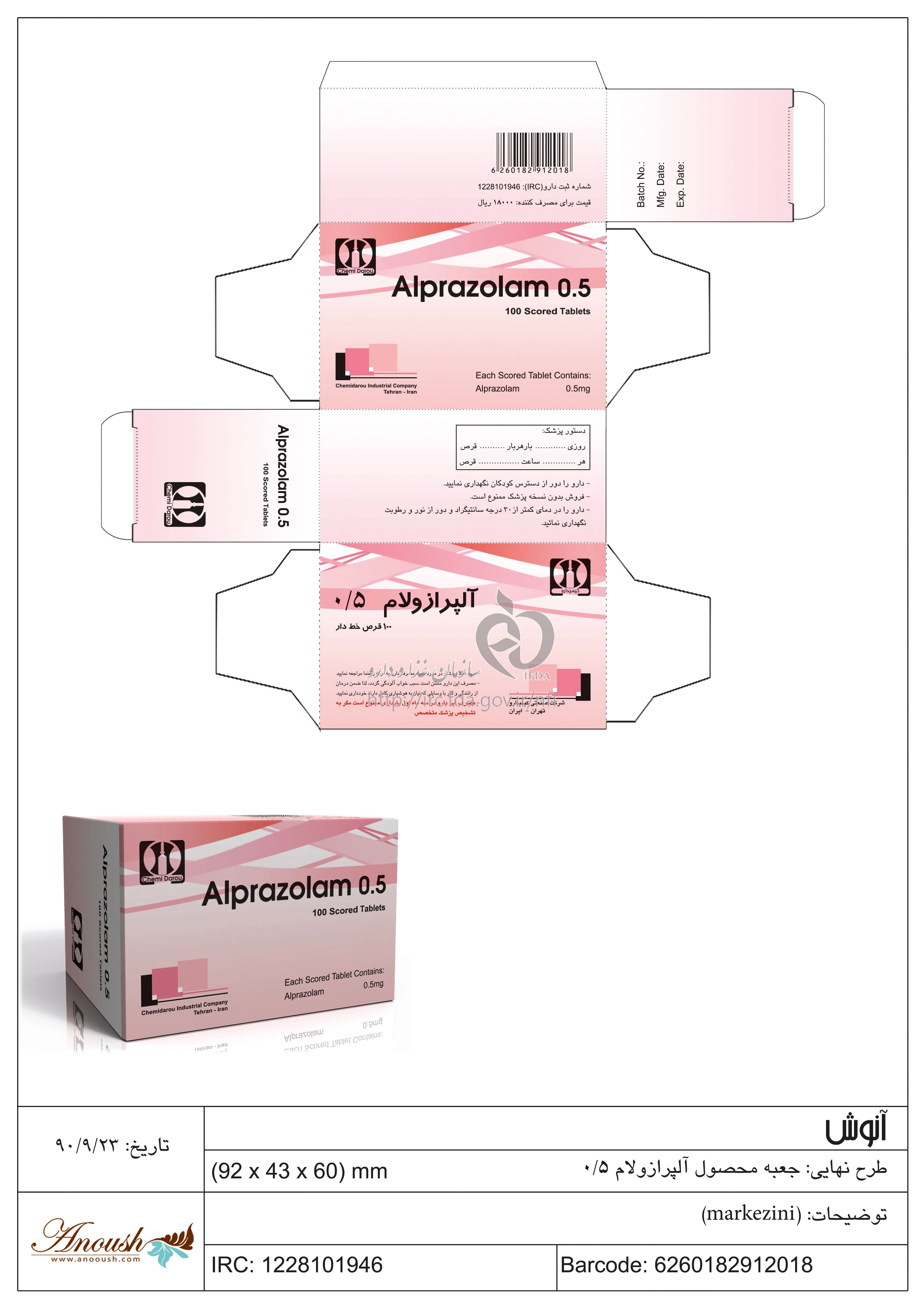 آلپرازولام قرص خوراکی 0.5 mg