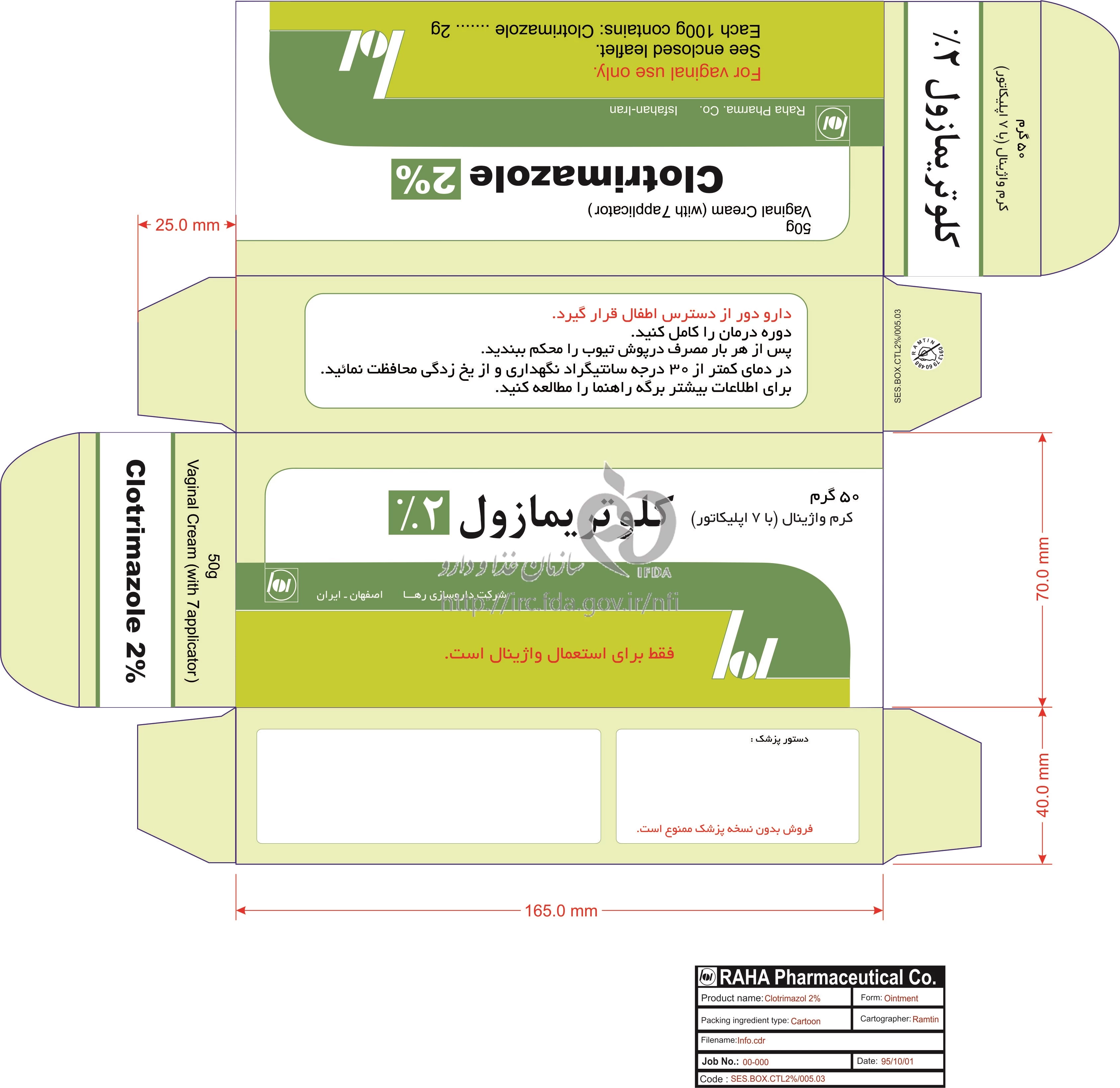 کلوتریمازول کرم واژینال 2 % 50GRAM