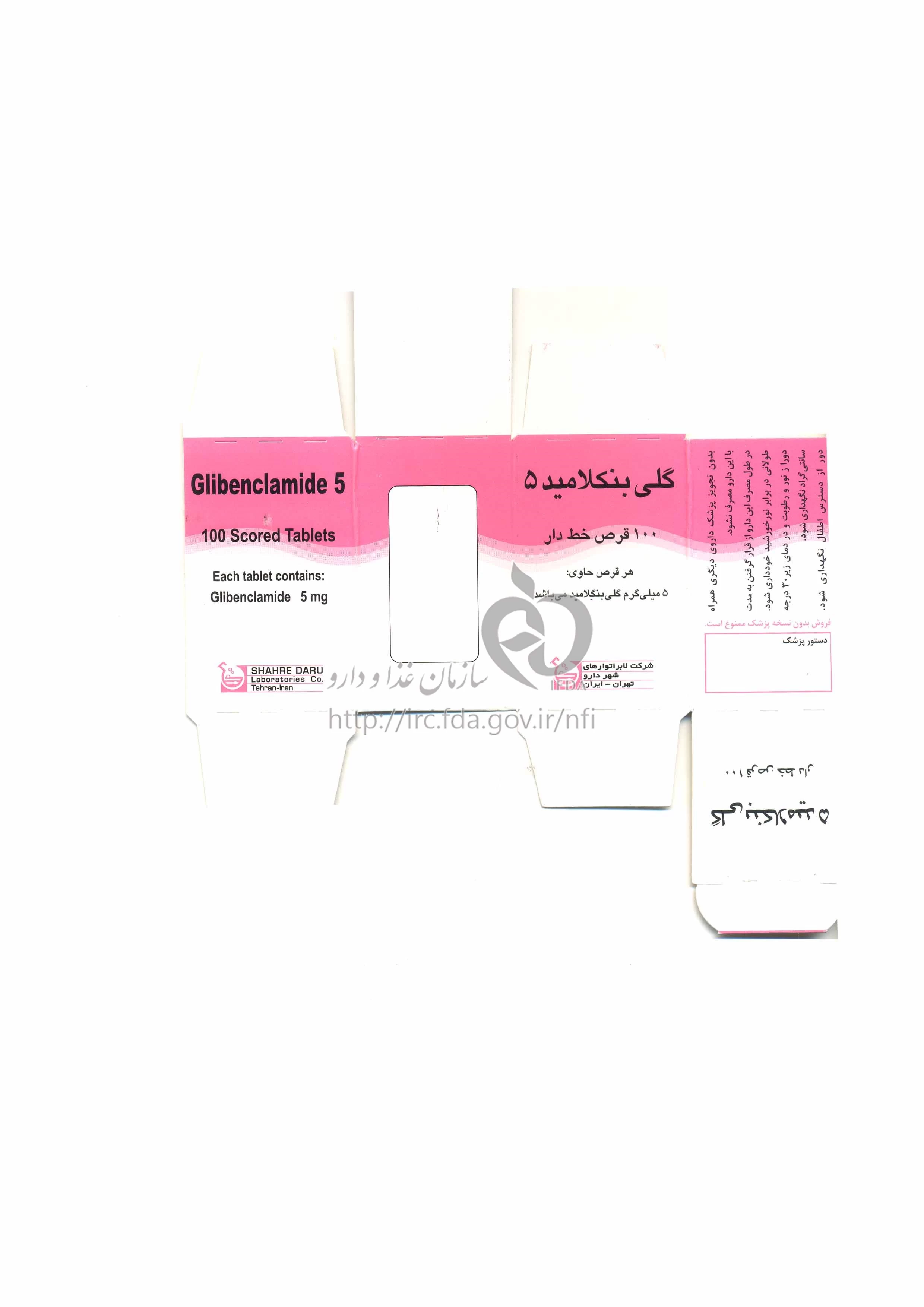 گلی بنکلامید قرص خوراکی 5 mg
