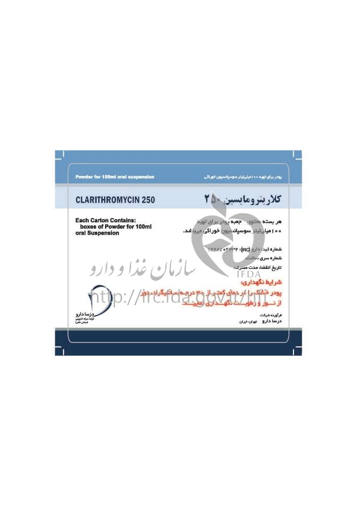 کلاریترومایسین پودر برای تهیه سوسپانسیون خوراکی 250 mg/5 mL 100MILLILITER