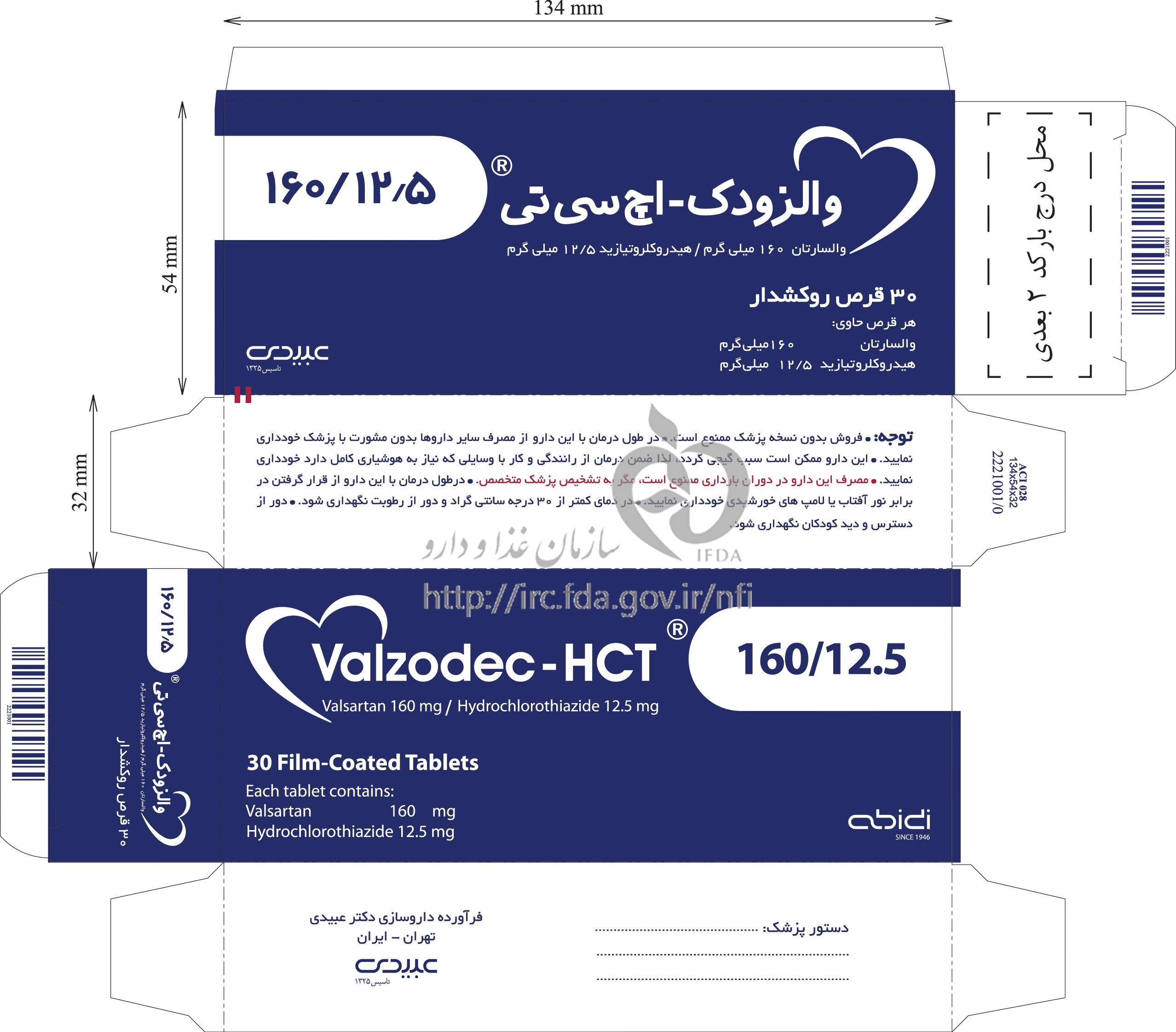 دکترها والزودک - اچ سی تی قرص خوراکی 160 mg/12.5 mg