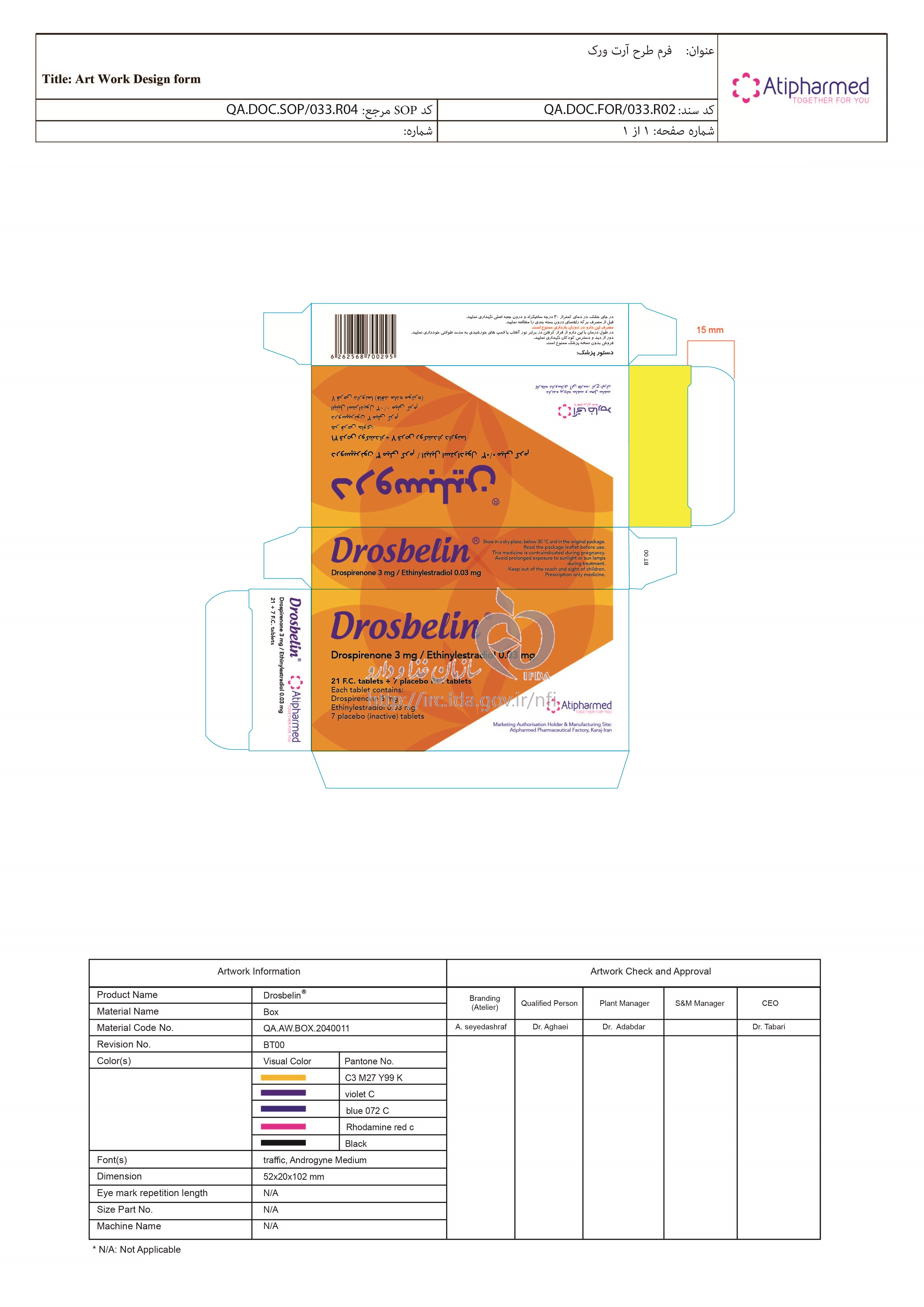 دروسبلین قرص خوراکی 3 mg/0.03 mg