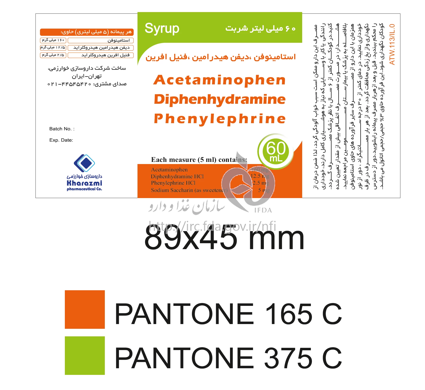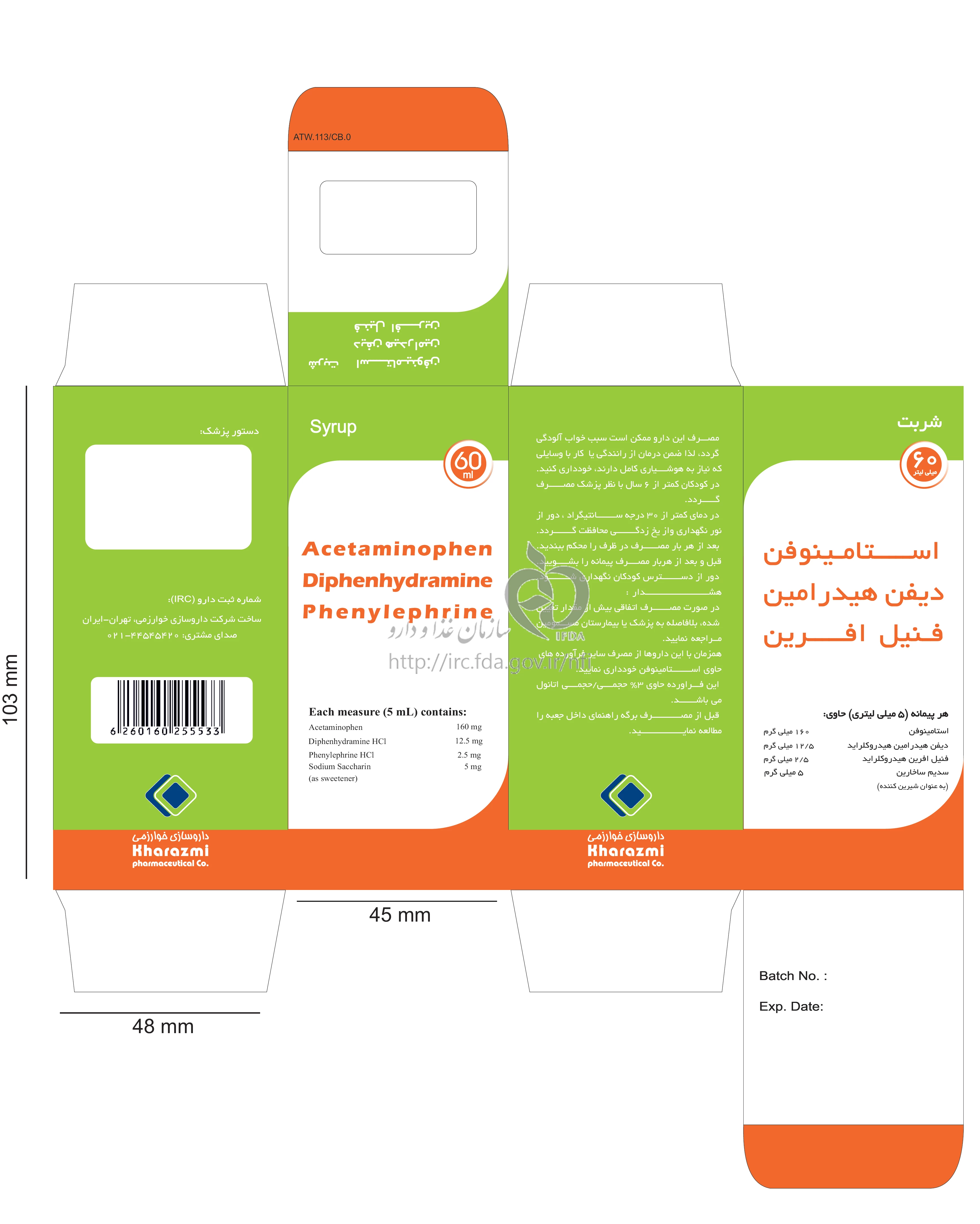 استامینوفن/ دیفن هیدرامین/ فنیل افرین شربت خوراکی 160 mg/12.5 mg/2.5 mg/5mL 60MILLILITER