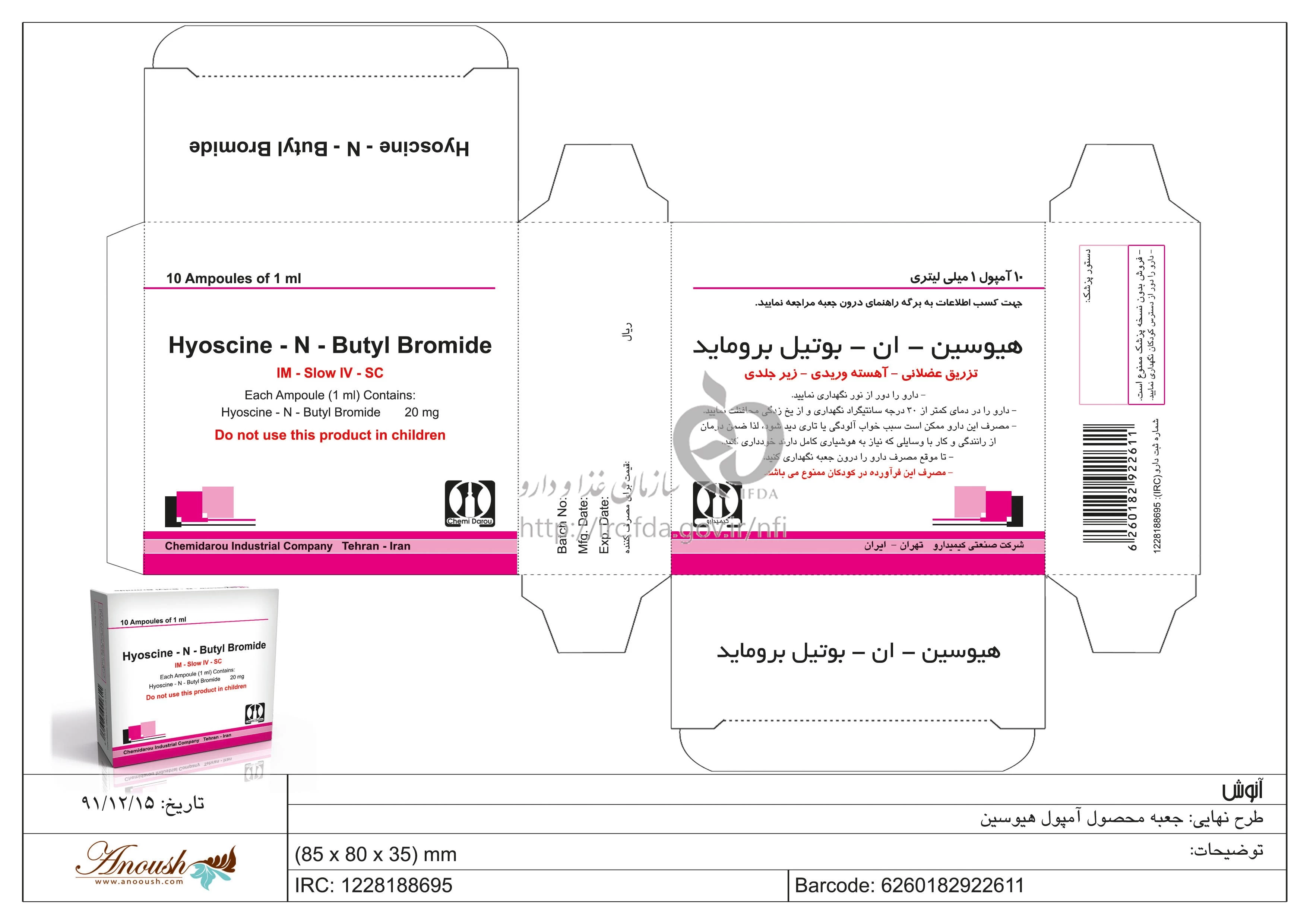 داروی HYOSCINE-N-BUTYL BROMIDE INJECTION PARENTERAL 20 mg/1mL برای درمان درد شکمی ناشی از تنش عضلات دستگاه گوارش، تشنجات سیستم گوارشی، مشکلات صفراوی و کلیه اختلالات صفراوی مورد استفاده قرار میگیرد. این دارو به صورت تزریق وریدی و عضلانی تجویز میشود. معمولاً جرعت روزانه این دارو بین 20 تا 40 میلیگرم است و میتوان آن را با یک مقدار مساوی آب، تزریق کرد. قبل از مصرف این دارو بهتر است که با یک پزشک مشورت کنید.