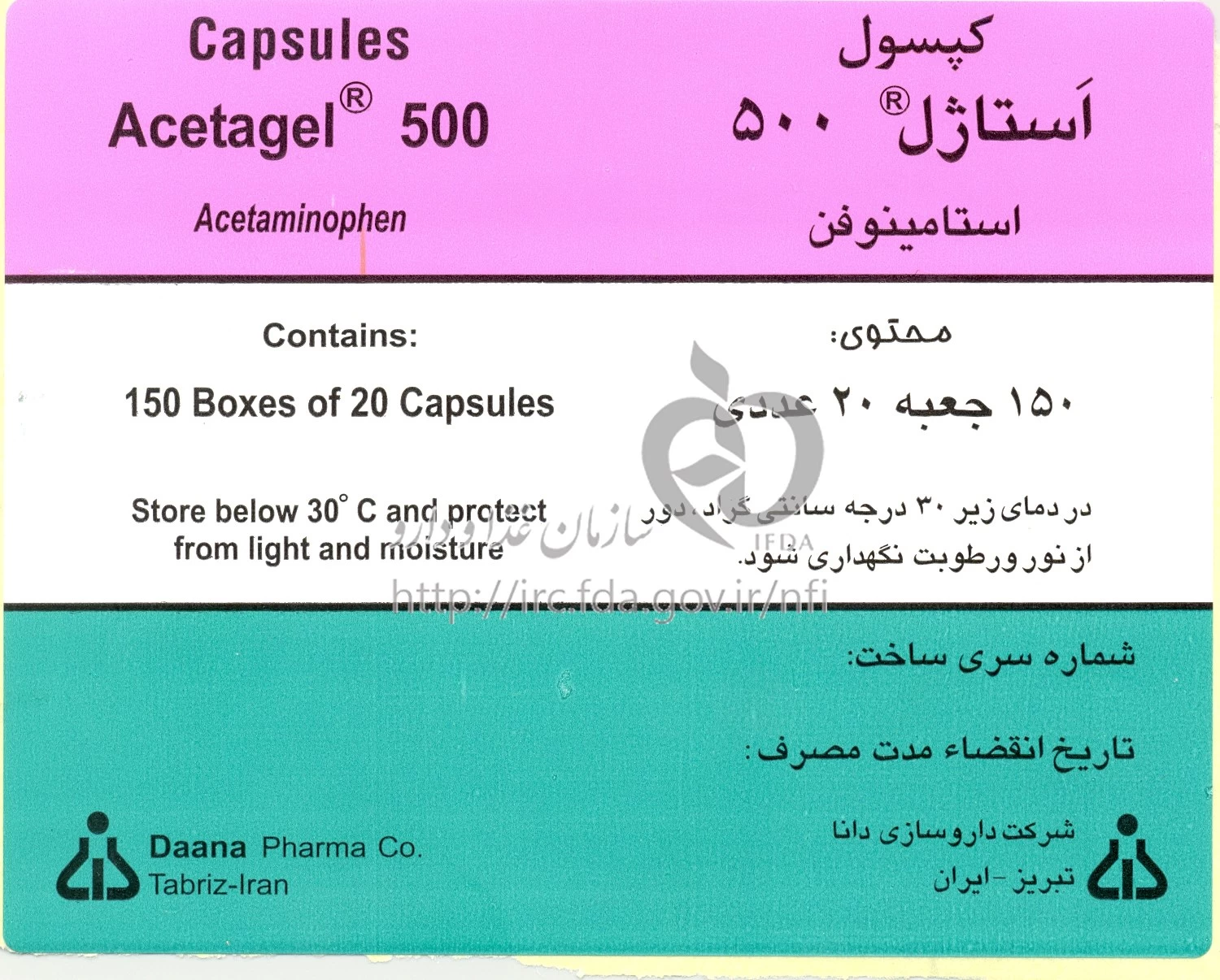 استاژل کپسول با روکش ژلاتین خوراکی 500 mg