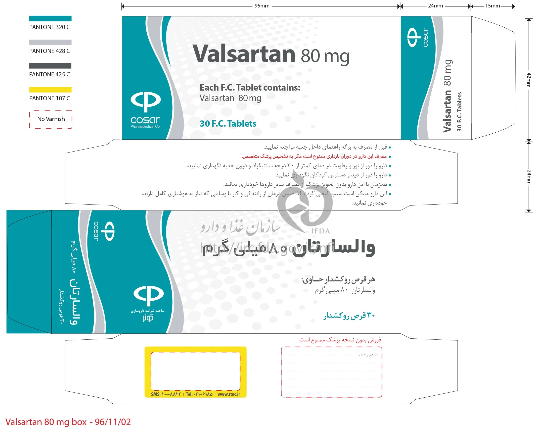این دارو در کنترل پرفشاری خون، در بیماران قلبی-عروقی مبتلا به نارسایی عملکرد بطن چپ پس از انفارکتوس میوکارد و در کنترل نارسایی قلبی مصرف می شود.والزارتان به صورت ترکیبی با هیدروکلرتیازید یا آملودیپین در یک قرص واحد نیز در بازار وجود دارد. به بخش اشکال داروئی مراجعه شود.