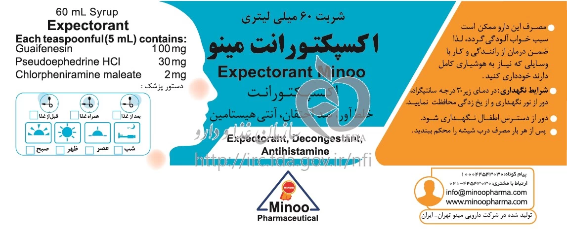 اکسپکتورانت مینو شربت خوراکی 100 mg/2 mg/30 mg/5mL 60MILLILITER