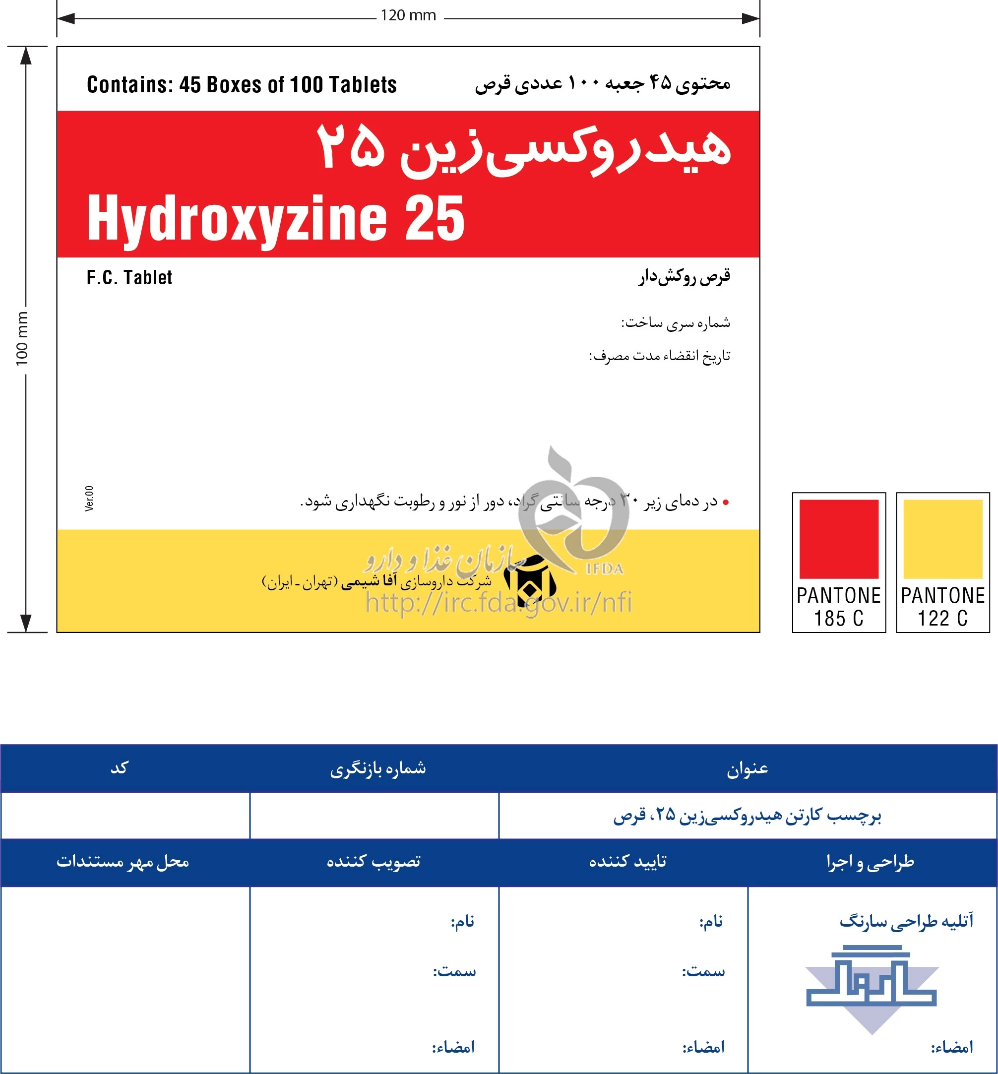 تداخل های دارویی هیدروکسی زین قرص خوراکی 25 mg