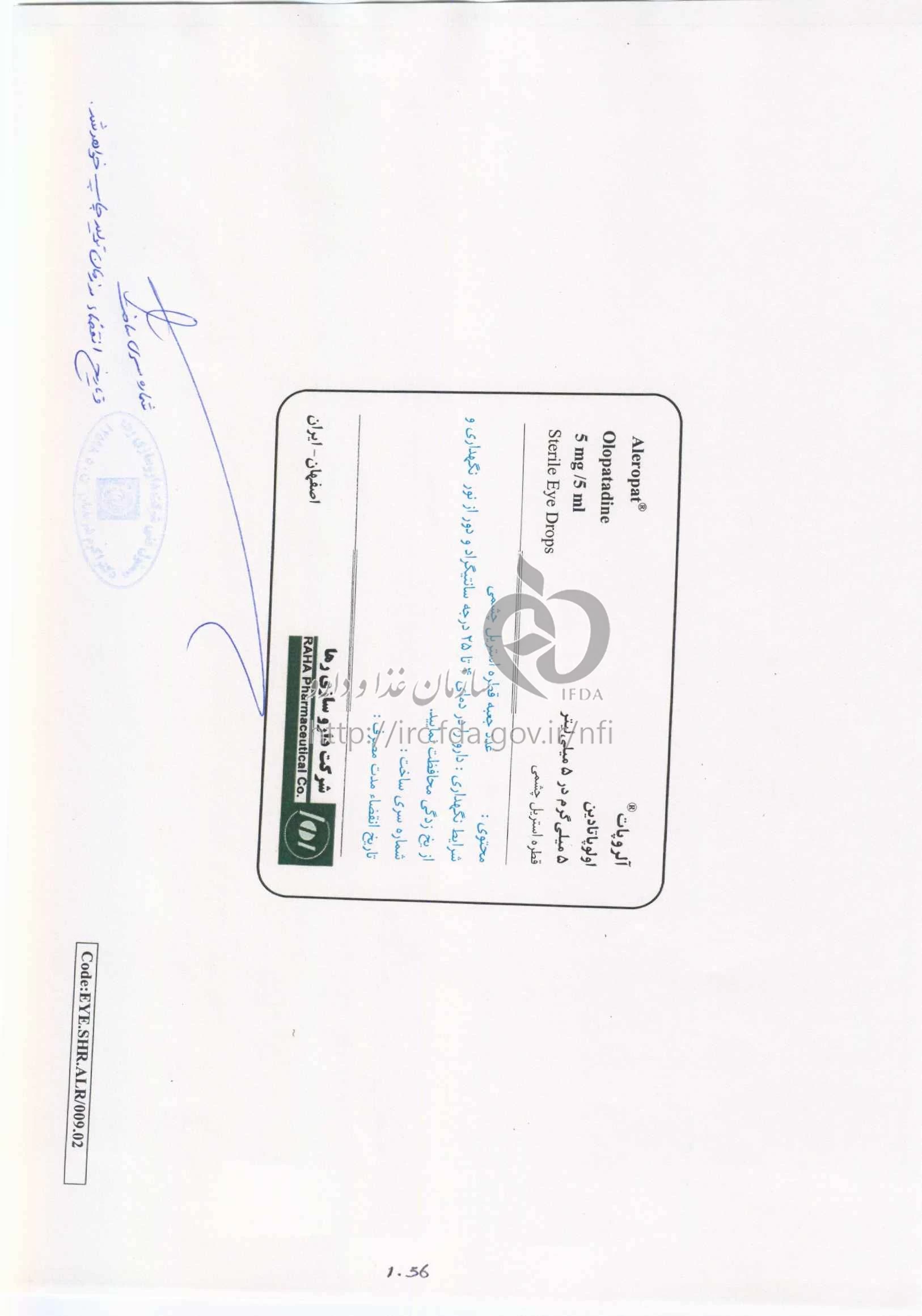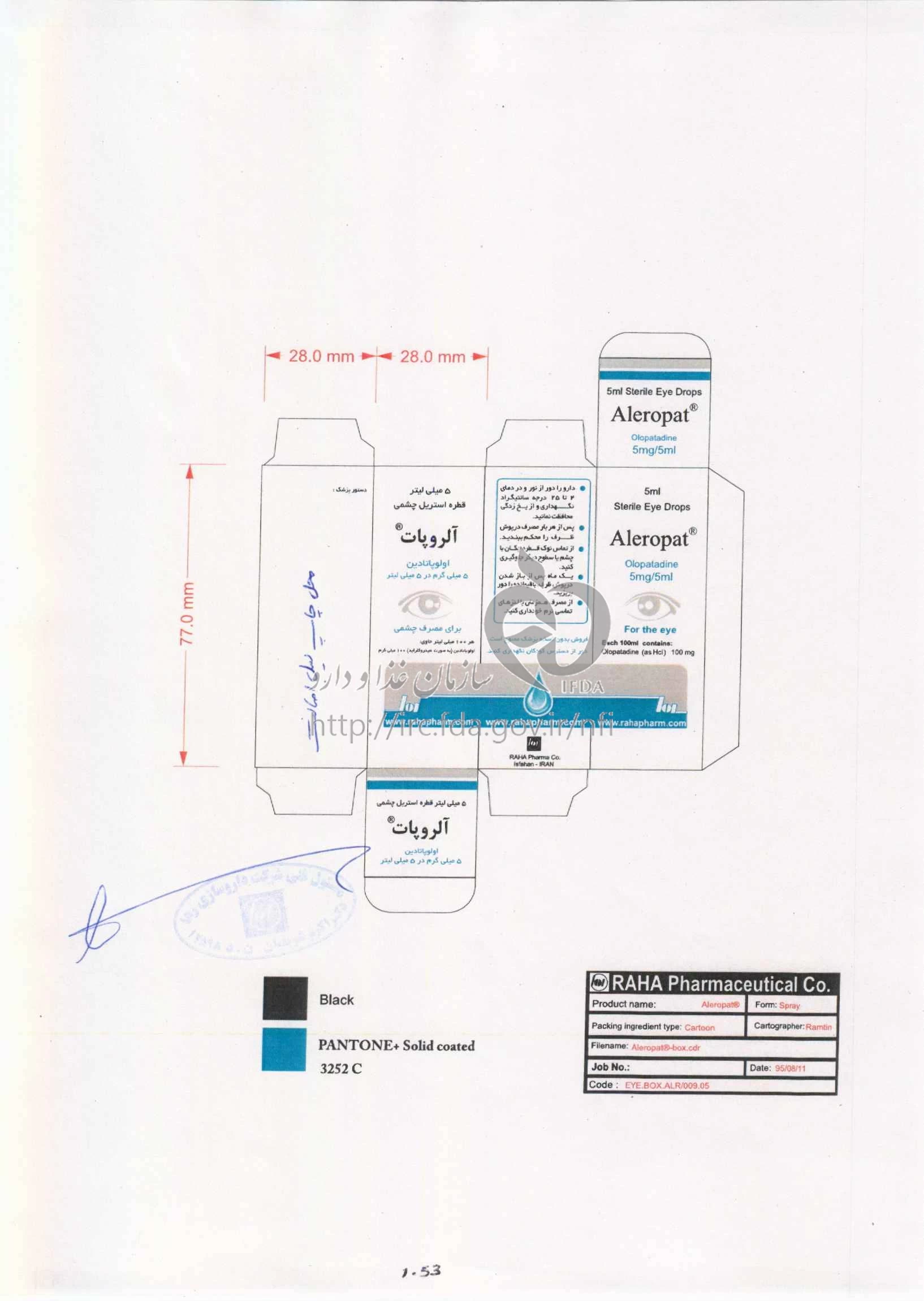 موارد مصرف ، عوارض جانبی ، مصرف بارداری و تداخلات دارویی آلروپات محلول ، قطره چشمی 5 mg/5mL 5MILLILITER