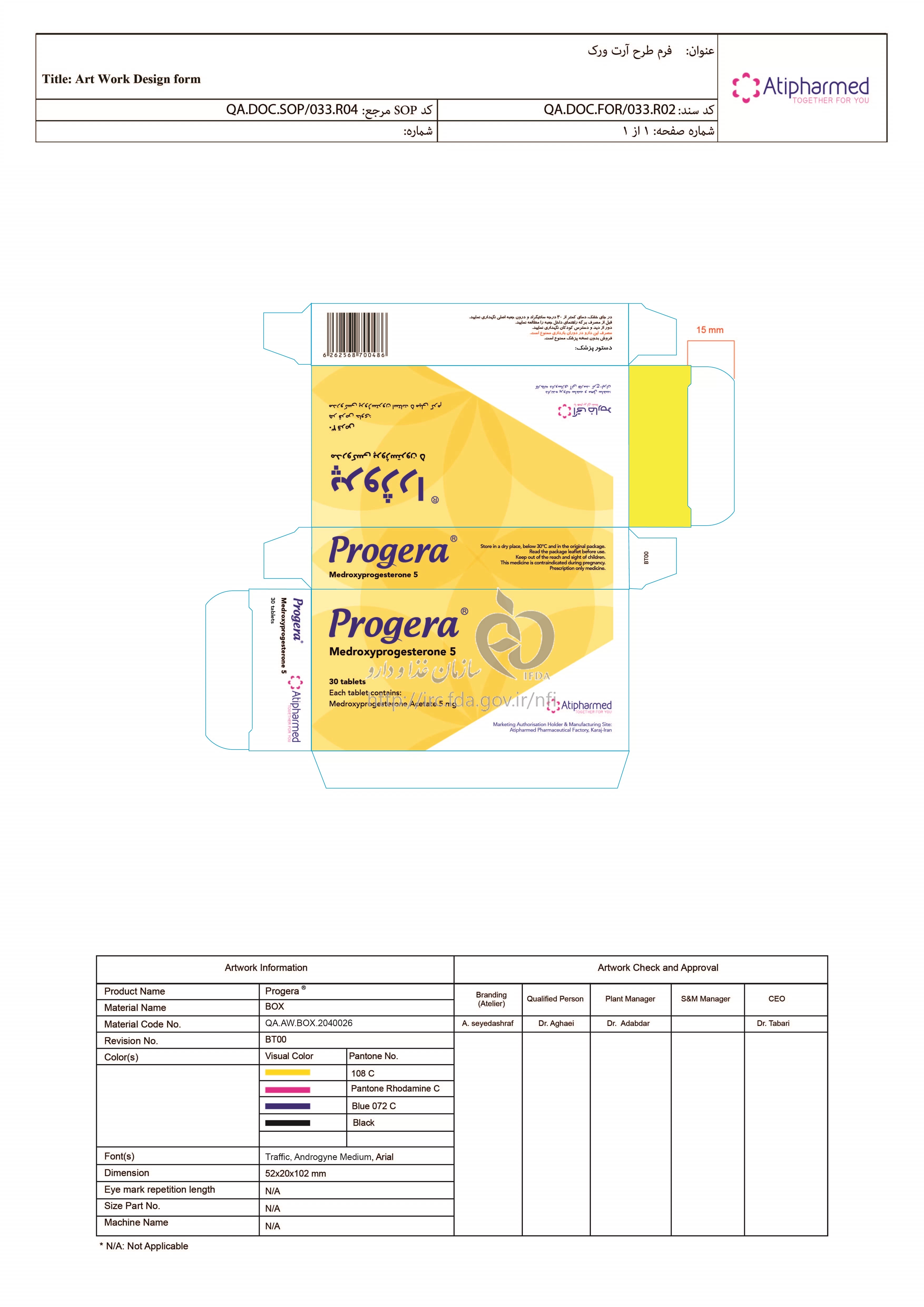 پروژرا قرص خوراکی 5 mg